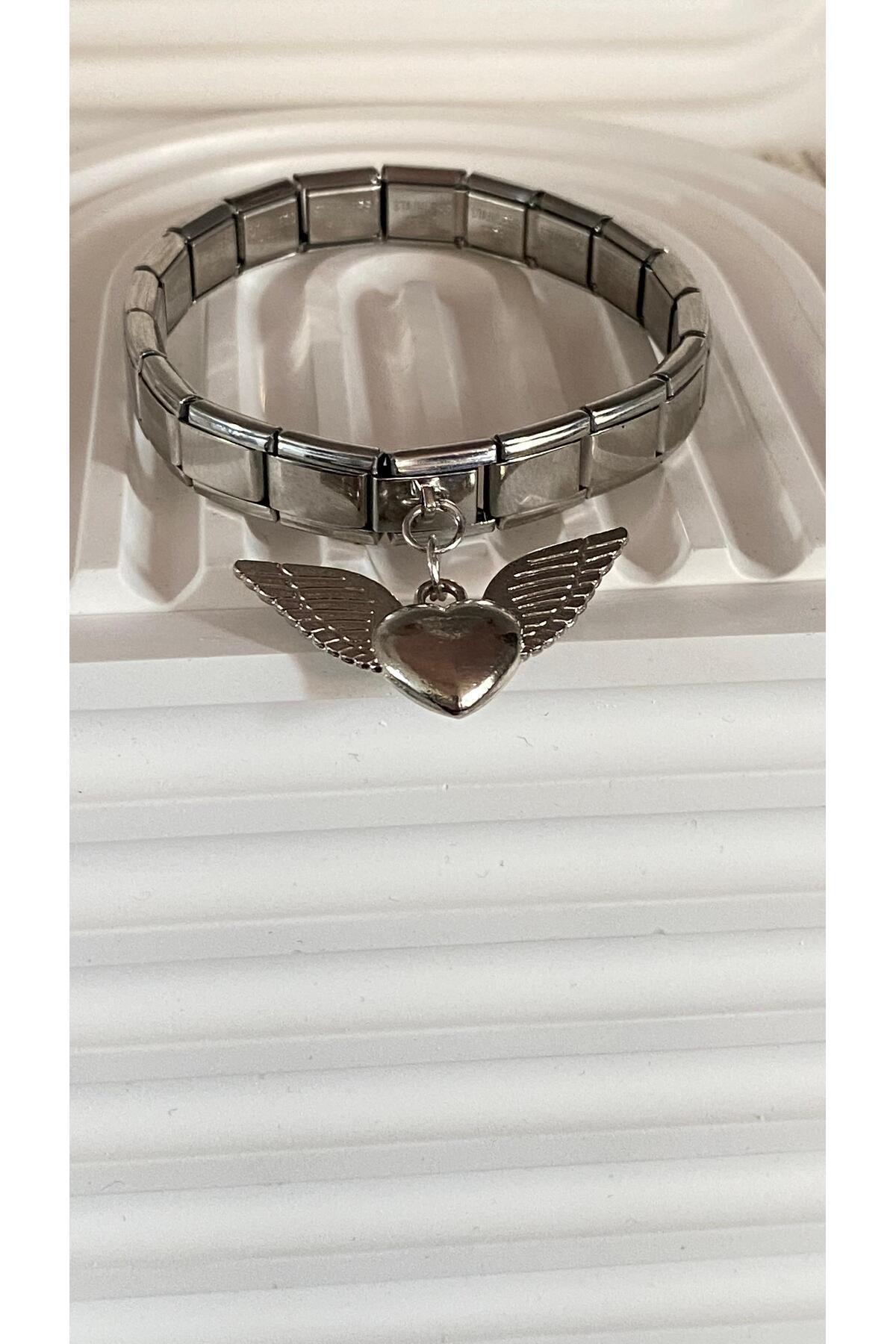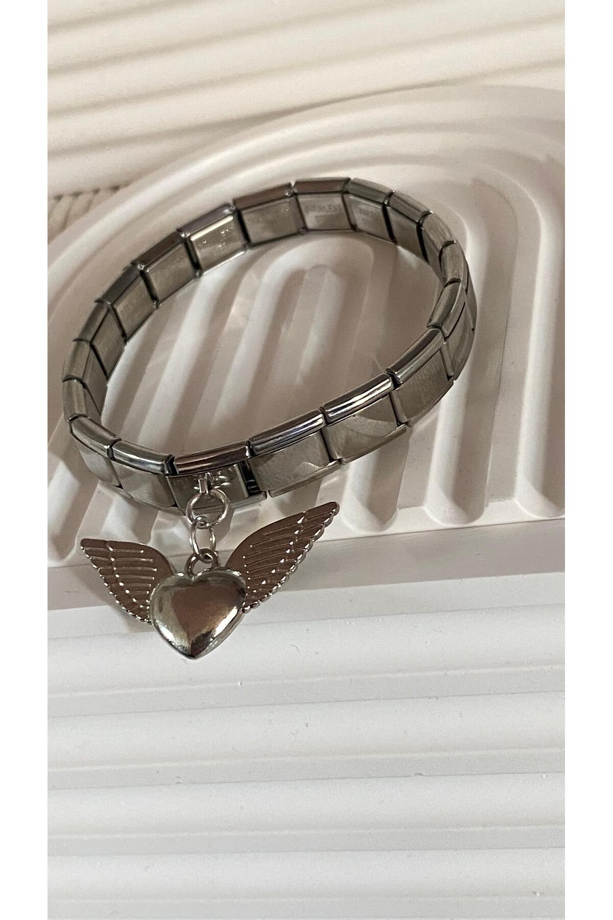 melek kanadı kalp figürlü çelik italyan charm bileklik melek kanadı kalp figürlü çelik italyan charm bileklik 69641 19 cm
