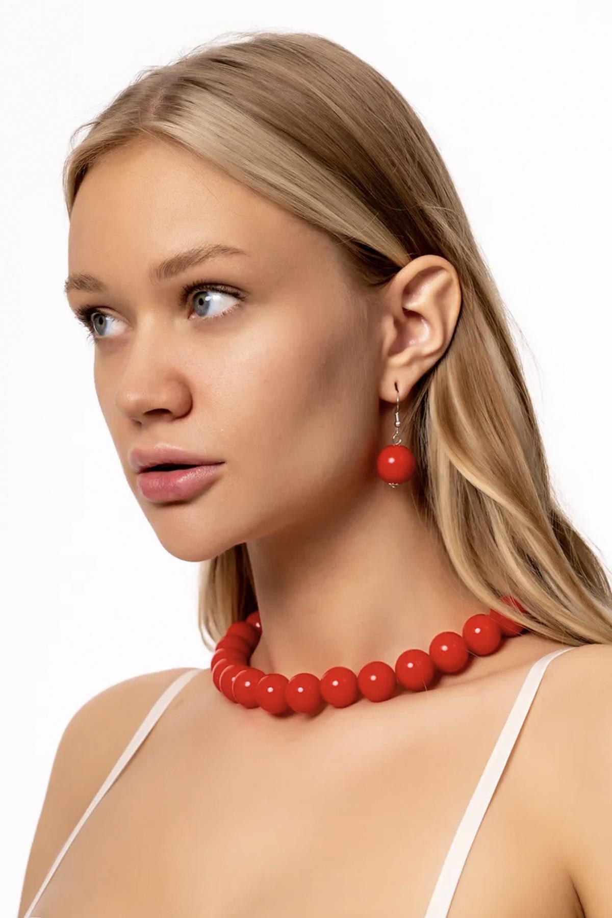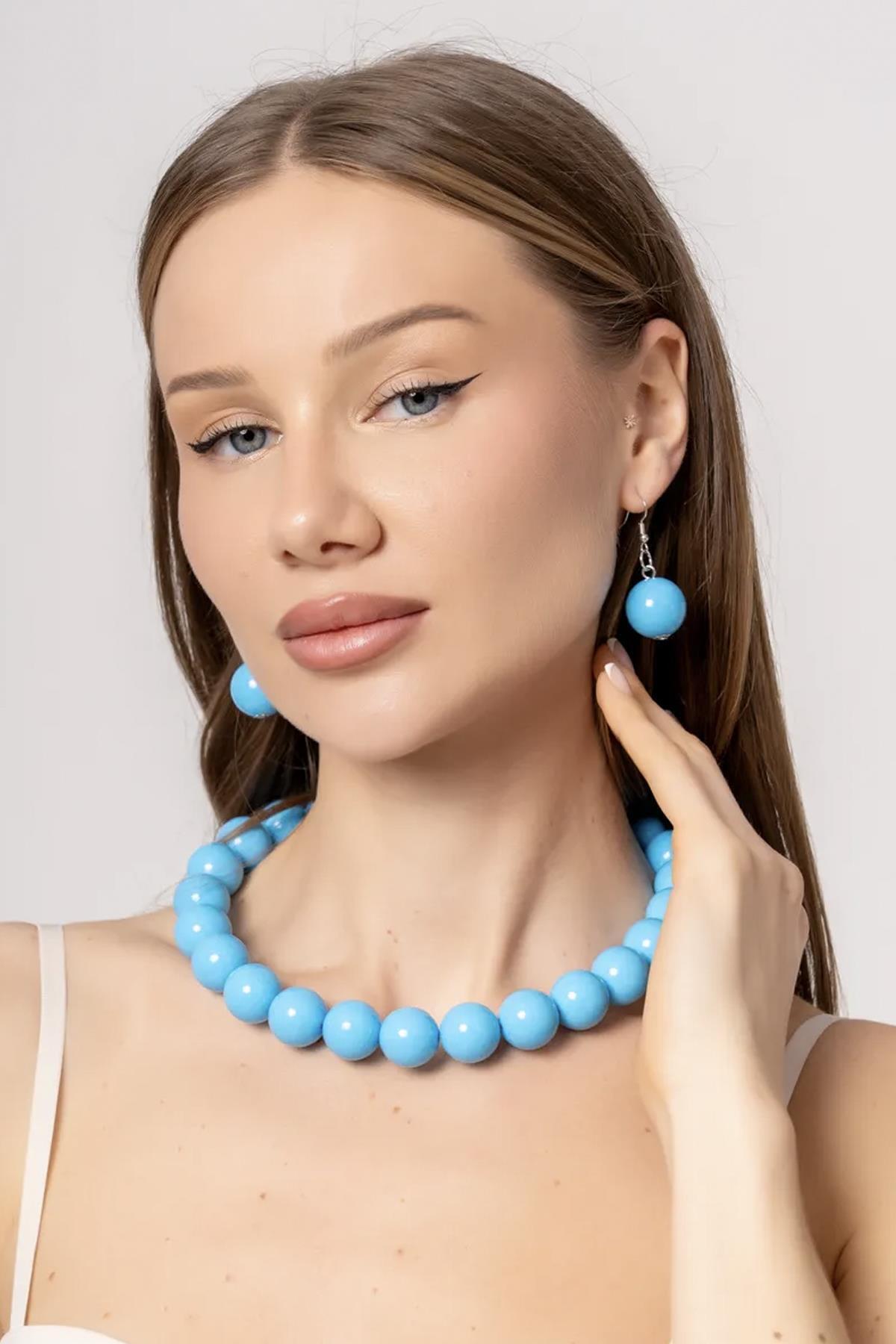 Büyük Boncuklu Kolye Küpe Set - 20mm Boncuklu Büyük Boncuklu Kolye Küpe Set - 20mm Boncuklu NEO-2665 تک سایز