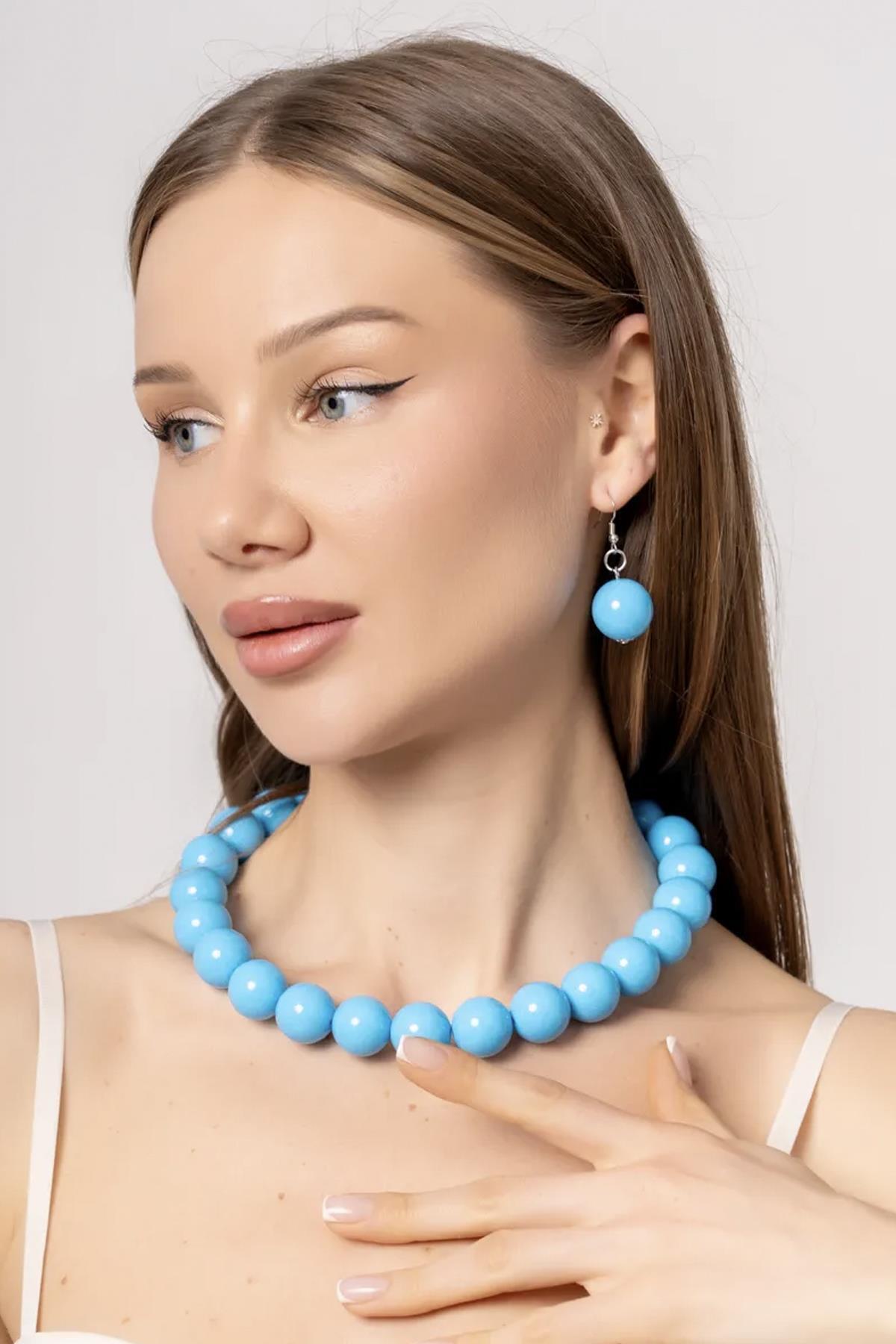 Büyük Boncuklu Kolye Küpe Set - 20mm Boncuklu Büyük Boncuklu Kolye Küpe Set - 20mm Boncuklu NEO-2665 تک سایز