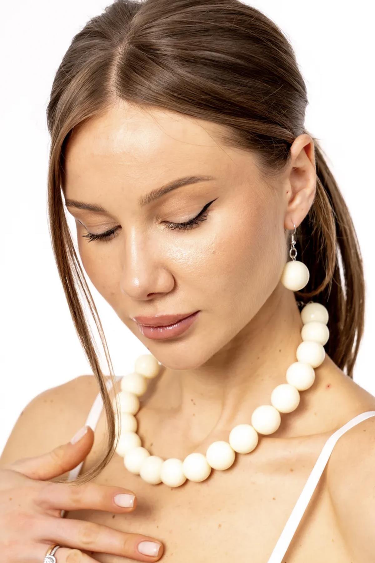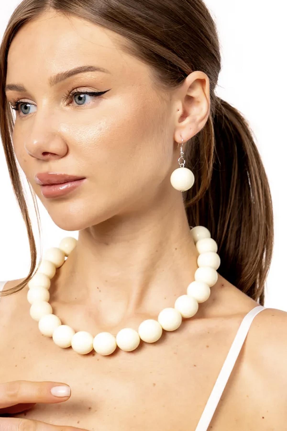Büyük Boncuklu Kolye Küpe Set - 20mm Boncuklu Büyük Boncuklu Kolye Küpe Set - 20mm Boncuklu NEO-2665 تک سایز