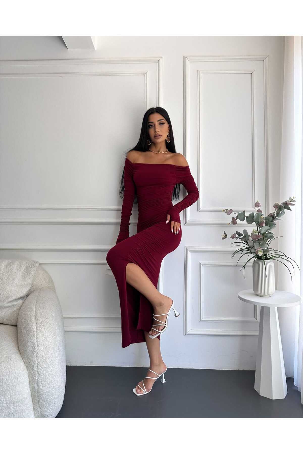 Bordo Yırtmaçlı Uzun Kollu Parmak Geçmeli Sandy Madonna Elbise – Şık & Zarif Abiye Modeli Bordo Yırtmaçlı Uzun Kollu Parmak Geçmeli Sandy Madonna Elbise – Şık & Zarif Abiye Modeli 49BAS7242 XL