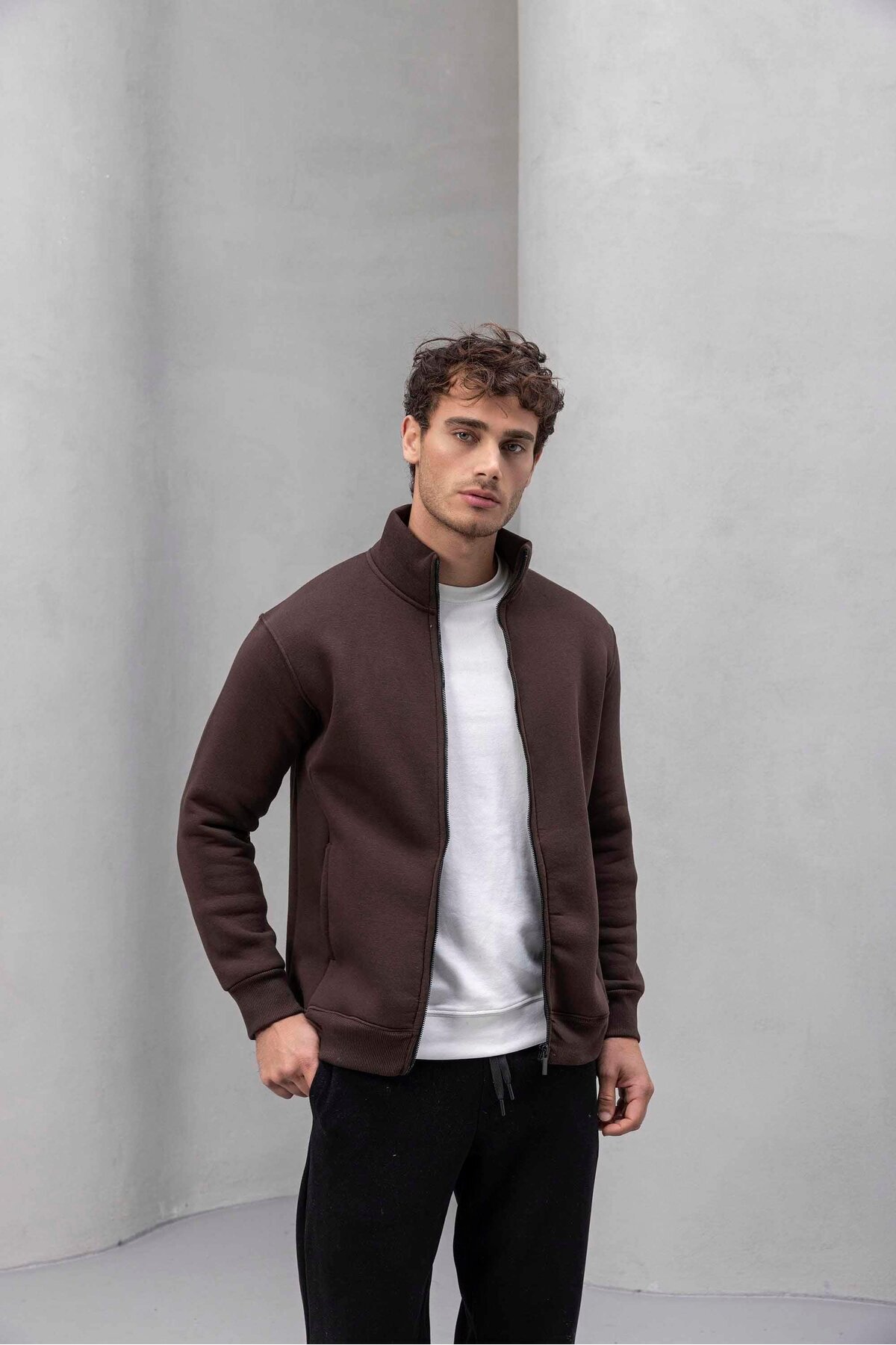 Haneke Regular Kalıp Diagonal 3 İplik Fermuarlı Kapüşonlu Erkek Sweatshirt - Kahve Haneke Regular Kalıp Diagonal 3 İplik Fermuarlı Kapüşonlu Erkek Sweatshirt - Kahve SS10031 2XL