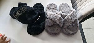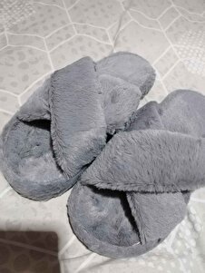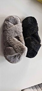 Kadın Gri Çapraz Bantlı Tüylü Ev Terliği BYNDCAP01 Kadın Gri Çapraz Bantlı Tüylü Ev Terliği BYNDCAP01 40