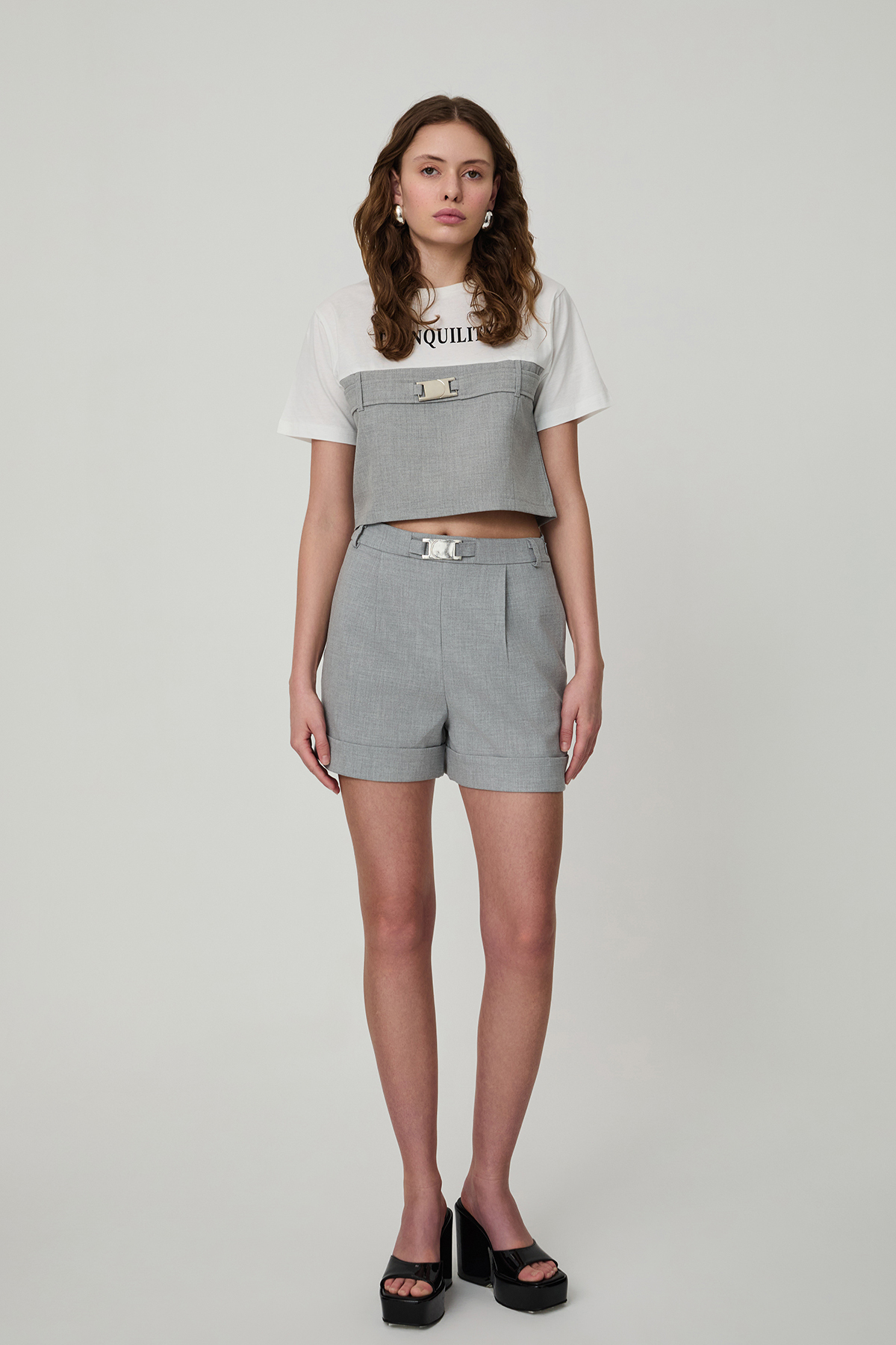 Kuş Gözü Aksesuarlı Önü Pileli Mini Şort Haki Kuş Gözü Aksesuarlı Önü Pileli Mini Şort Haki 26KSRT00984 L