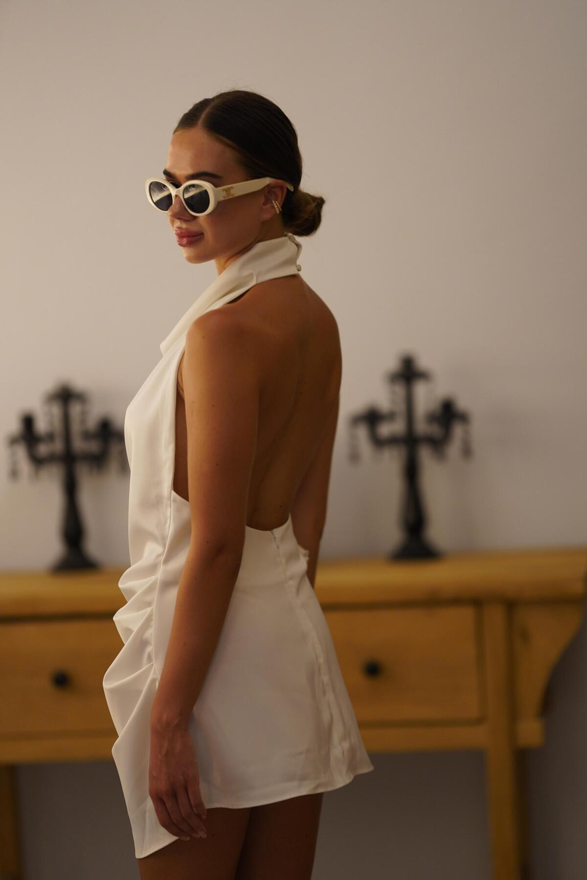 Lise Gül Detaylı Beyaz Saten Elbise Lise Gül Detaylı Beyaz Saten Elbise LS8994 L