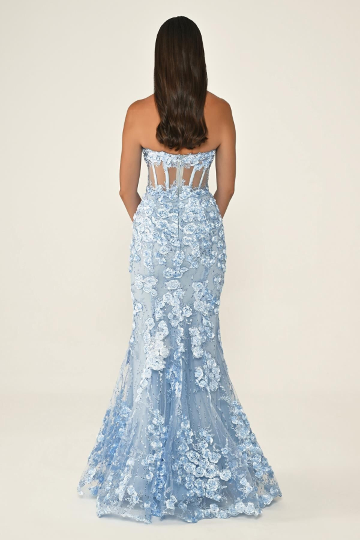 Straplez Kalp Yaka Beden Transparan Çiçek Detaylı Uzun Şık Abiye Elbise Straplez Kalp Yaka Beden Transparan Çiçek Detaylı Uzun Şık Abiye Elbise 4841 48