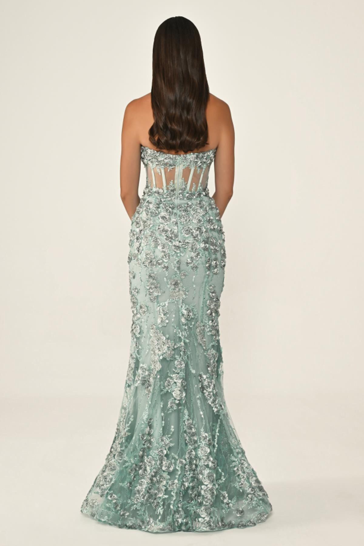 Straplez Kalp Yaka Beden Transparan Çiçek Detaylı Uzun Şık Abiye Elbise Straplez Kalp Yaka Beden Transparan Çiçek Detaylı Uzun Şık Abiye Elbise 4841 48