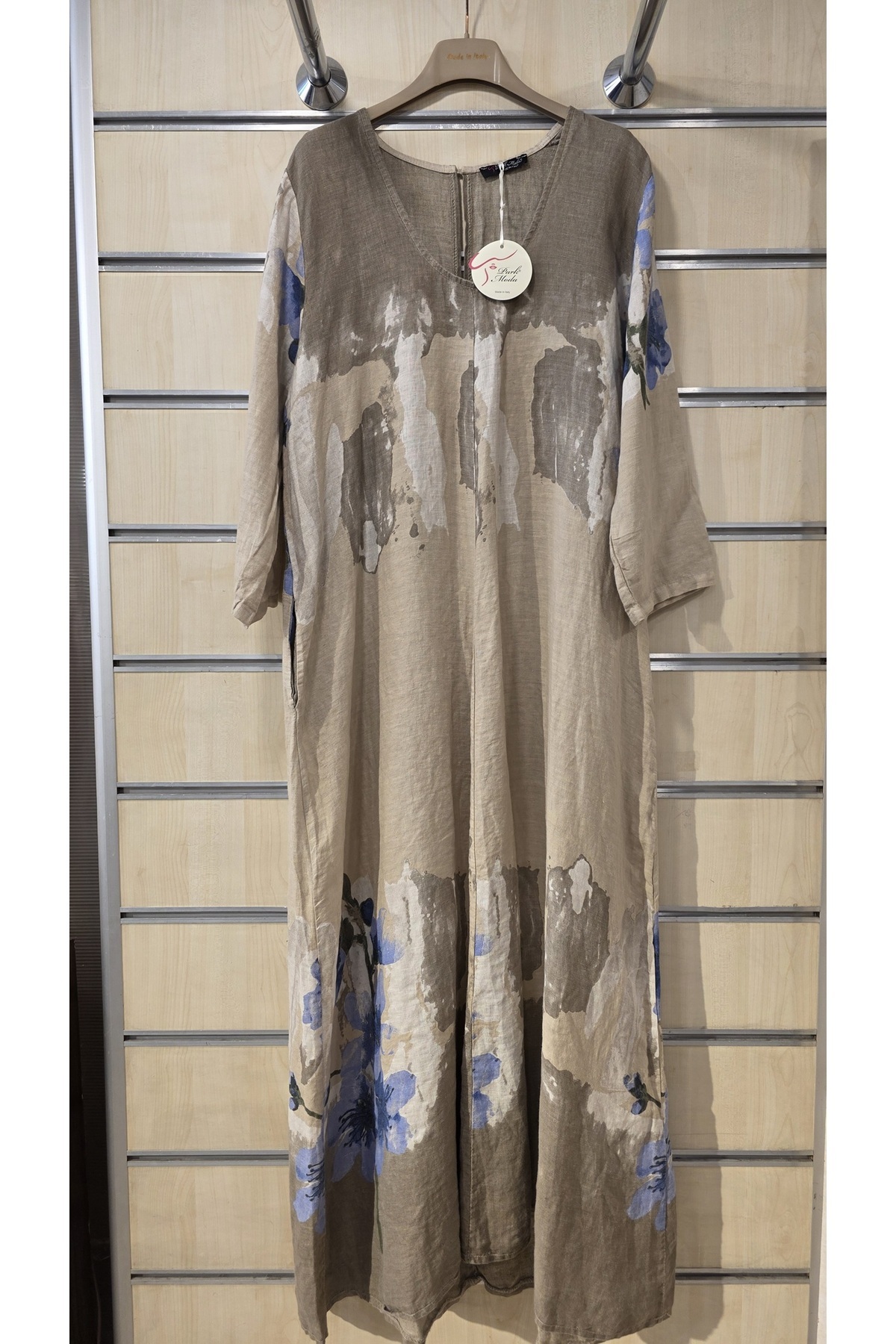 Uzun Keten Elbise Splash Çiçek Desen Uzun Keten Elbise Splash Çiçek Desen E20471 Splash Çiçek Desen Elbise Standart