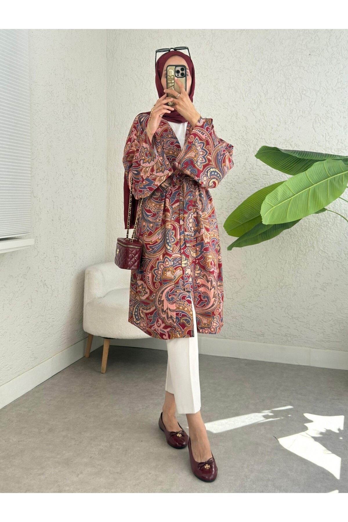 Beli Bağlamalı Etnik Desen Modal Kimono -Pembe Beli Bağlamalı Etnik Desen Modal Kimono -Pembe TY307-2396 Standart