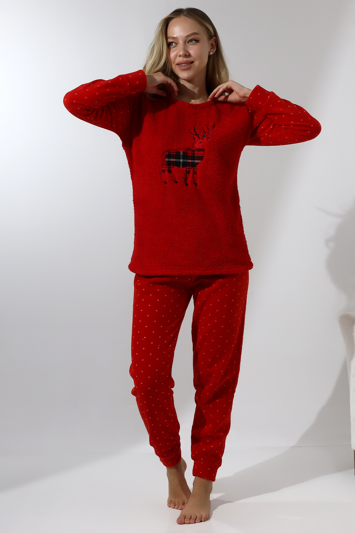 Kadın Puantiyeli Polar Kışlık Pijama Takımı Rahat Örme Kumaş Mükemmel Uyum Şık Görünüm Modern Stil Kadın Puantiyeli Polar Kışlık Pijama Takımı Rahat Örme Kumaş Mükemmel Uyum Şık Görünüm Modern Stil PB-MS9986378582 XL