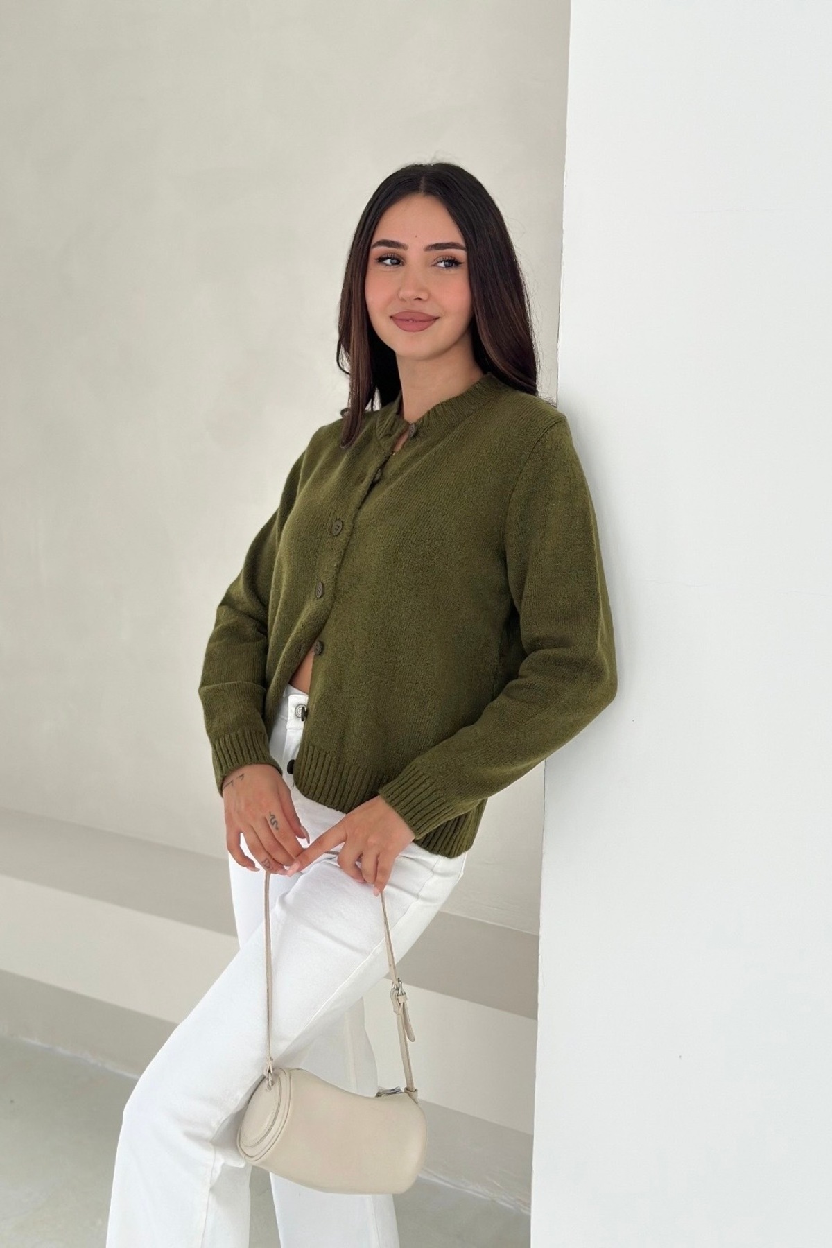 Yumuşak Dokulu Bisiklet Yaka Triko Hırka AW25HI0001 Yumuşak Dokulu Bisiklet Yaka Triko Hırka AW25HI0001 S/M