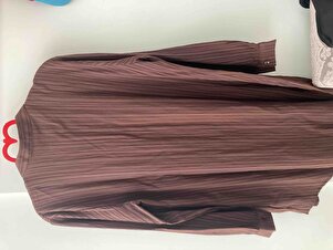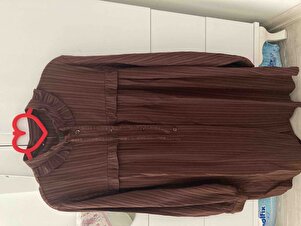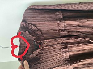 Kadın Yaka Detaylı Fırfırlı Robalı Gömlek Acı Kahve Kadın Yaka Detaylı Fırfırlı Robalı Gömlek Acı Kahve pmk429 2XL