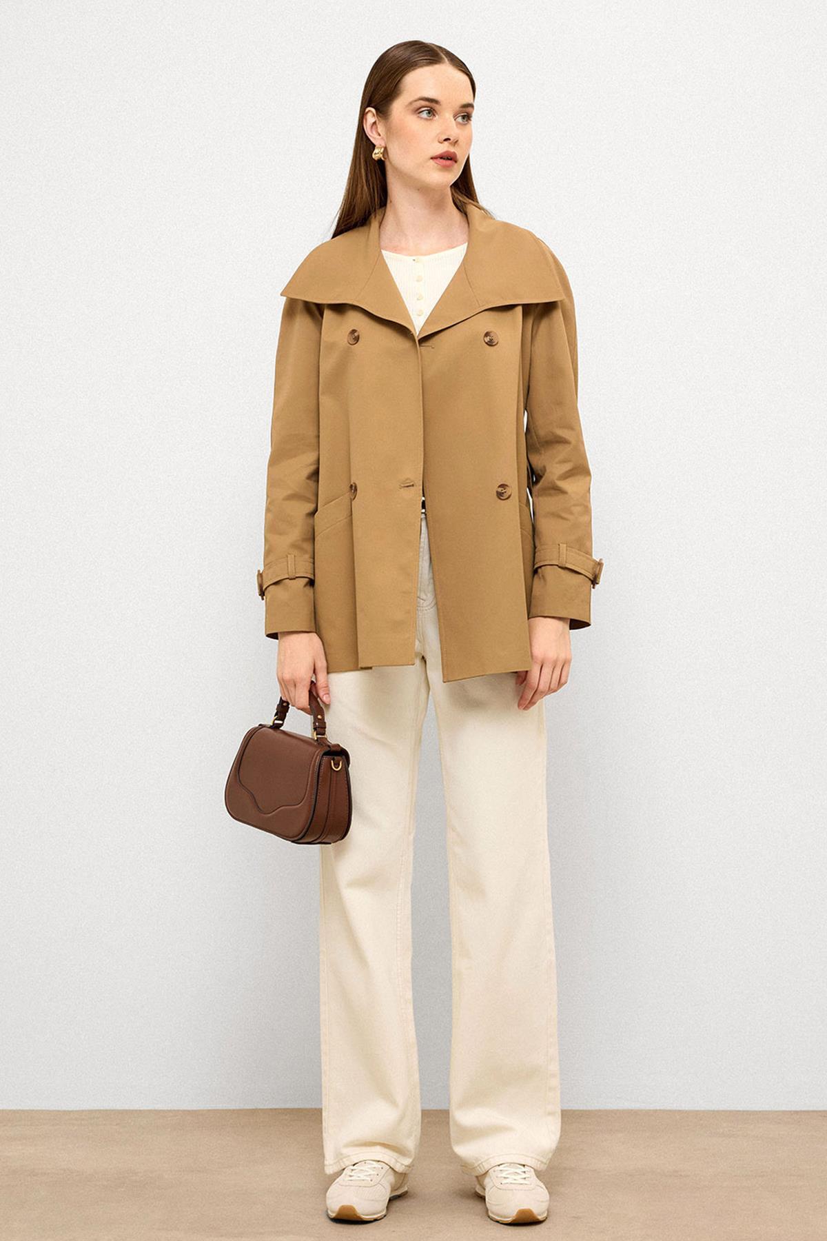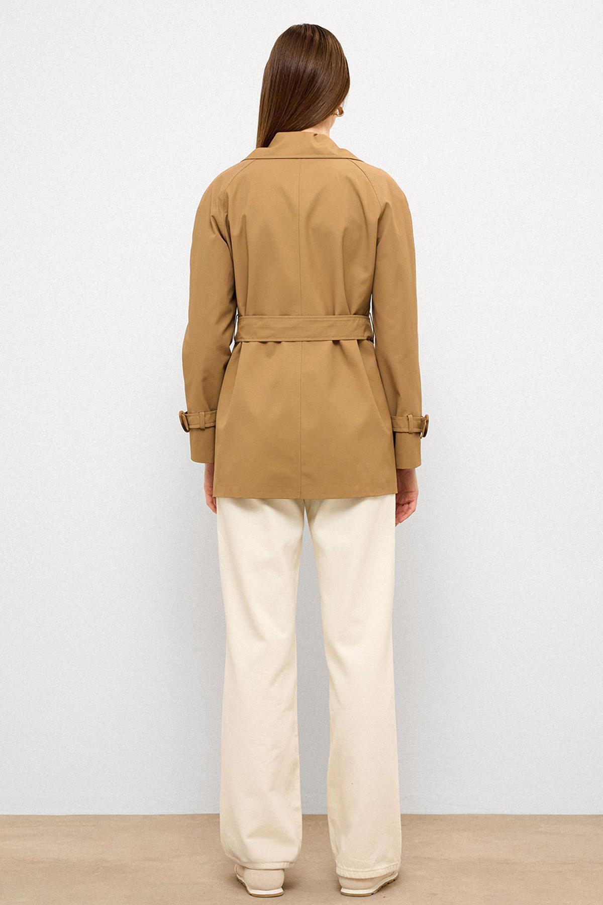 Kruvaze Reglan Kol Su İtici Özellikli Kısa Trençkot KAMEL 6762 Kruvaze Reglan Kol Su İtici Özellikli Kısa Trençkot KAMEL 6762 42