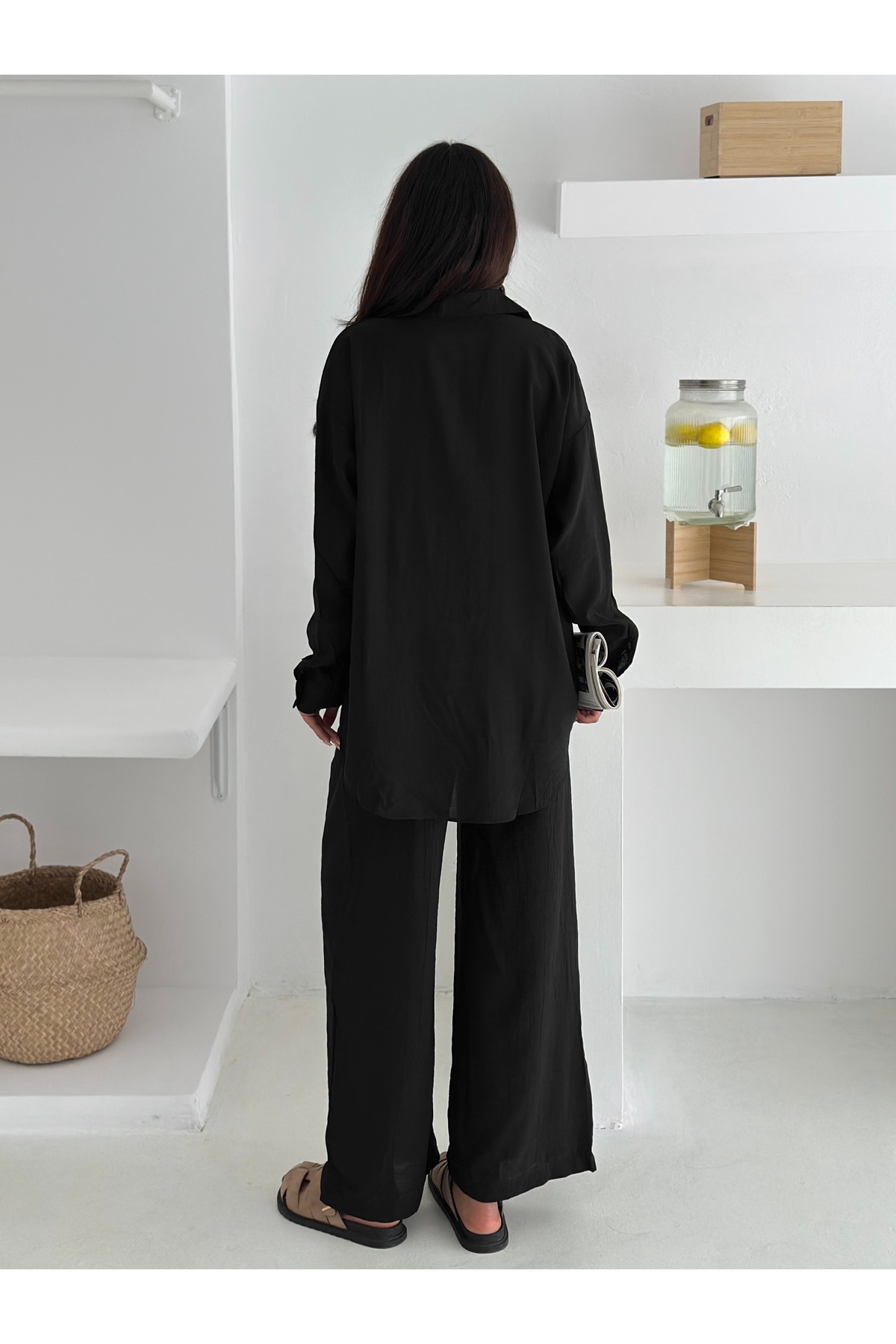 Beli Lastikli Geniş Paça Çilek Kumaş Gömlekli Takım Beli Lastikli Geniş Paça Çilek Kumaş Gömlekli Takım 57742757475EPAK XL