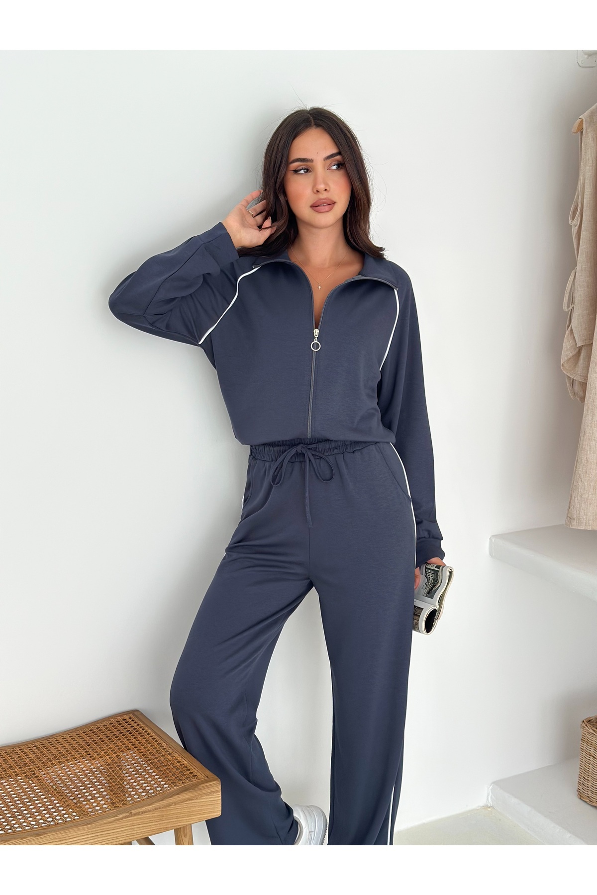 Biye Detaylı Geniş Paça Modal Kumaş Eşofman Takım Biye Detaylı Geniş Paça Modal Kumaş Eşofman Takım 4574474770001YSN XL