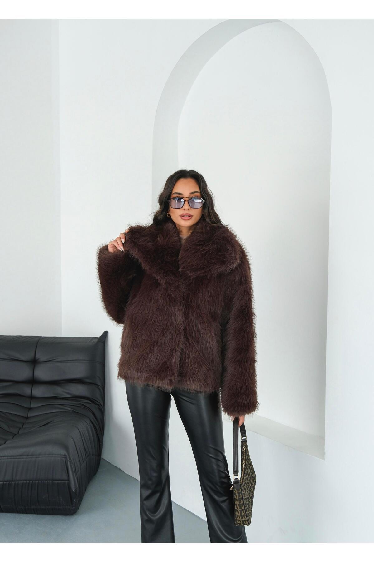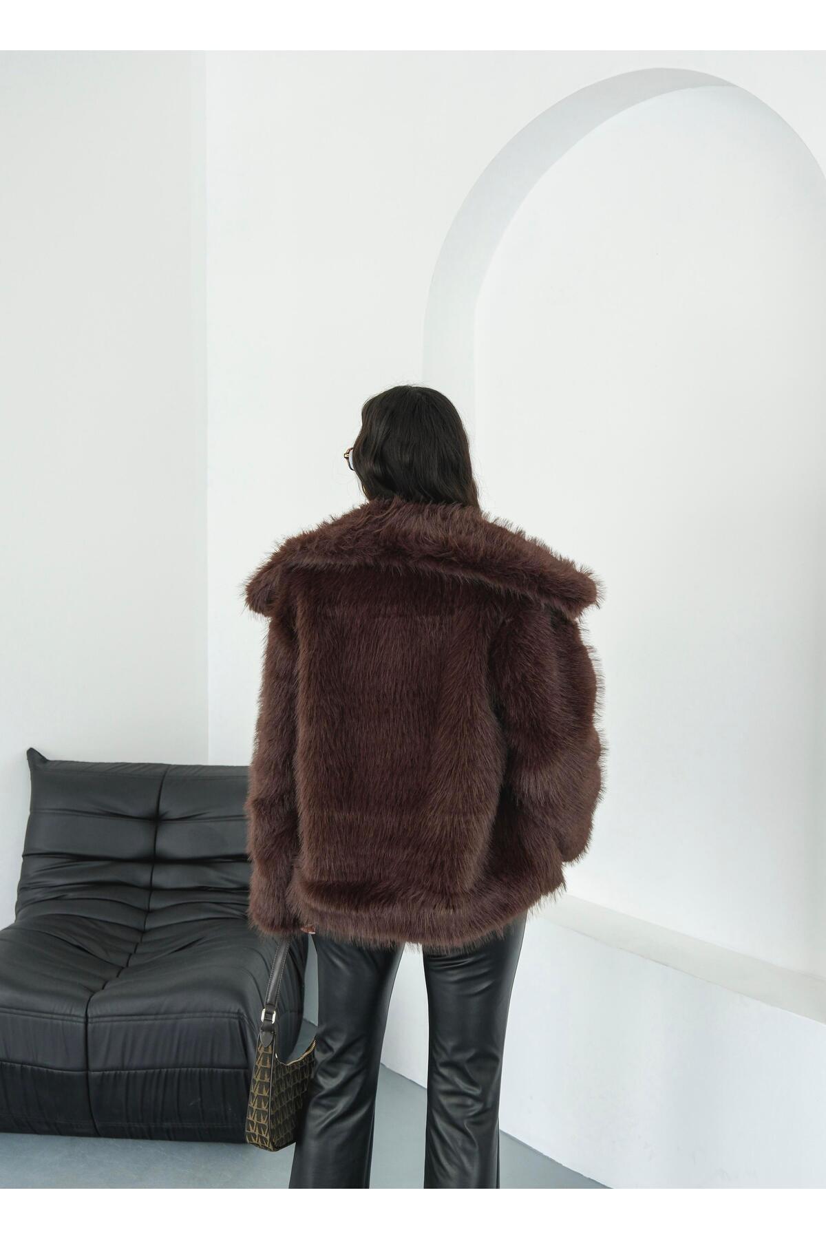 Luna Acı Kahve Oversize Kürk Ceket Luna Acı Kahve Oversize Kürk Ceket MA260001 L