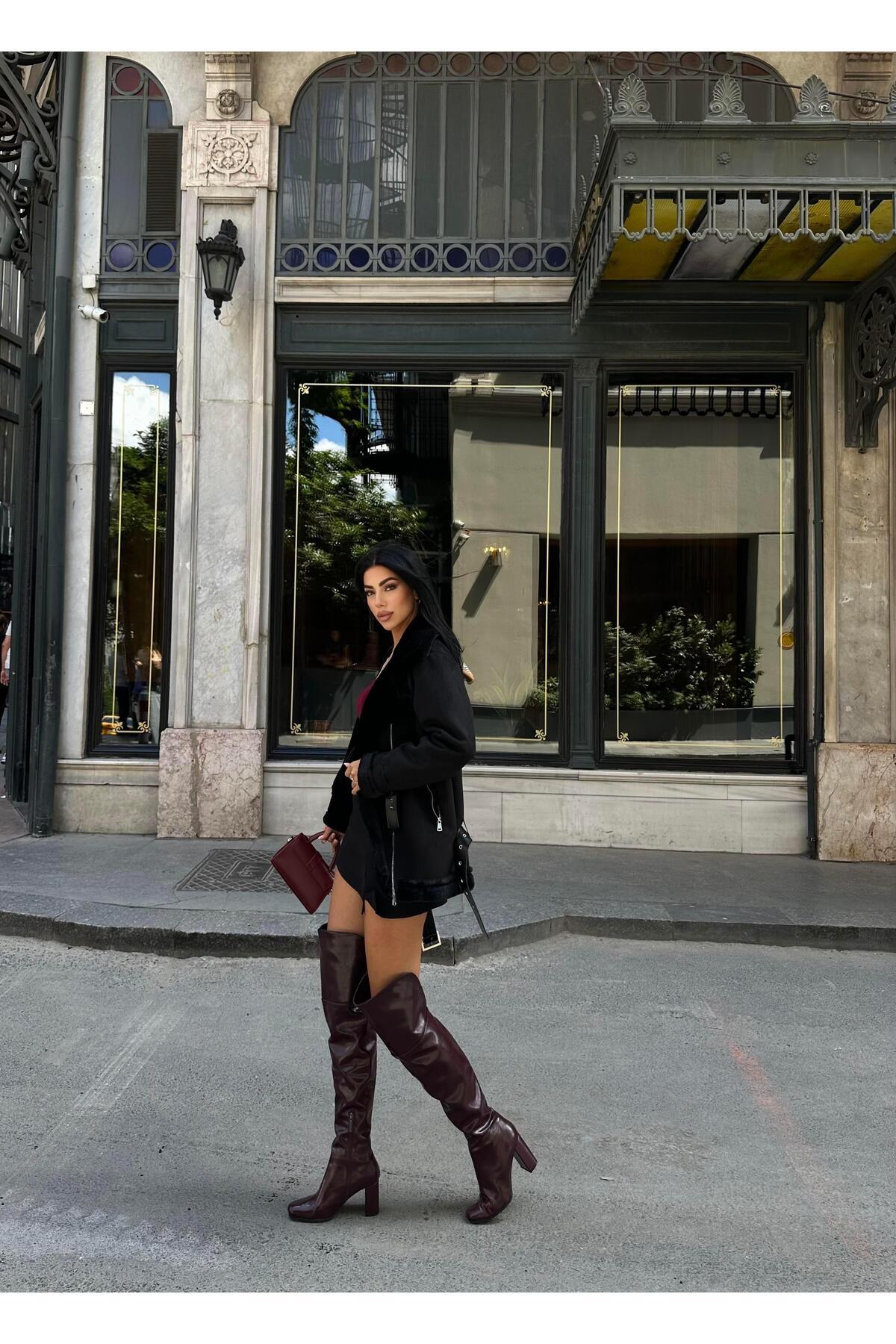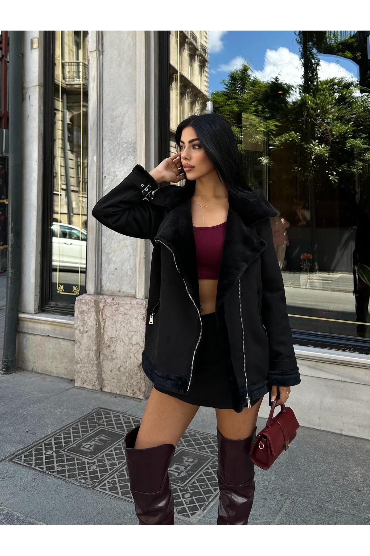 Kemerli Siyah Süet Ceket Kemerli Siyah Süet Ceket MA260003 L
