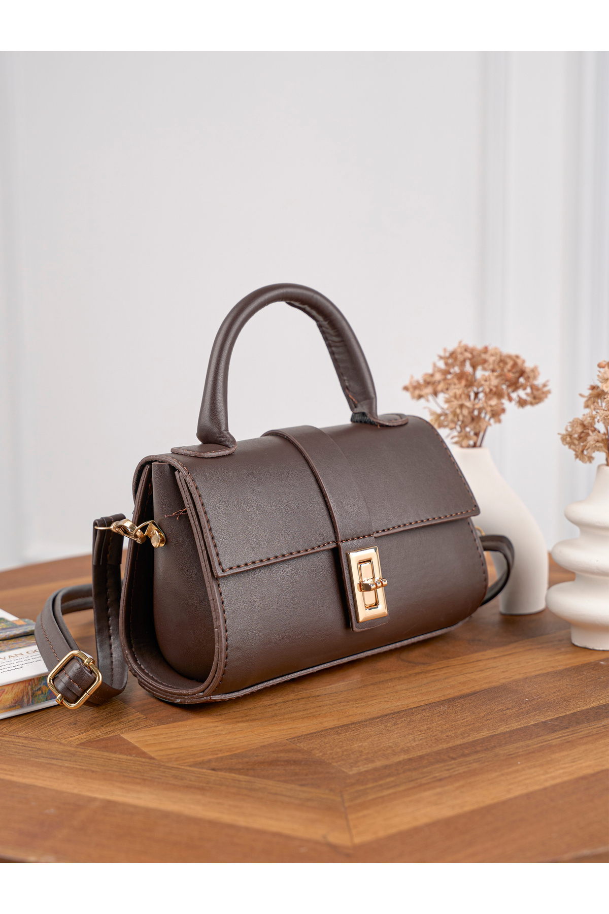 Kadın Acı Kahverengi El ve Omuz Çantası Kadın Acı Kahverengi El ve Omuz Çantası C370 تک سایز