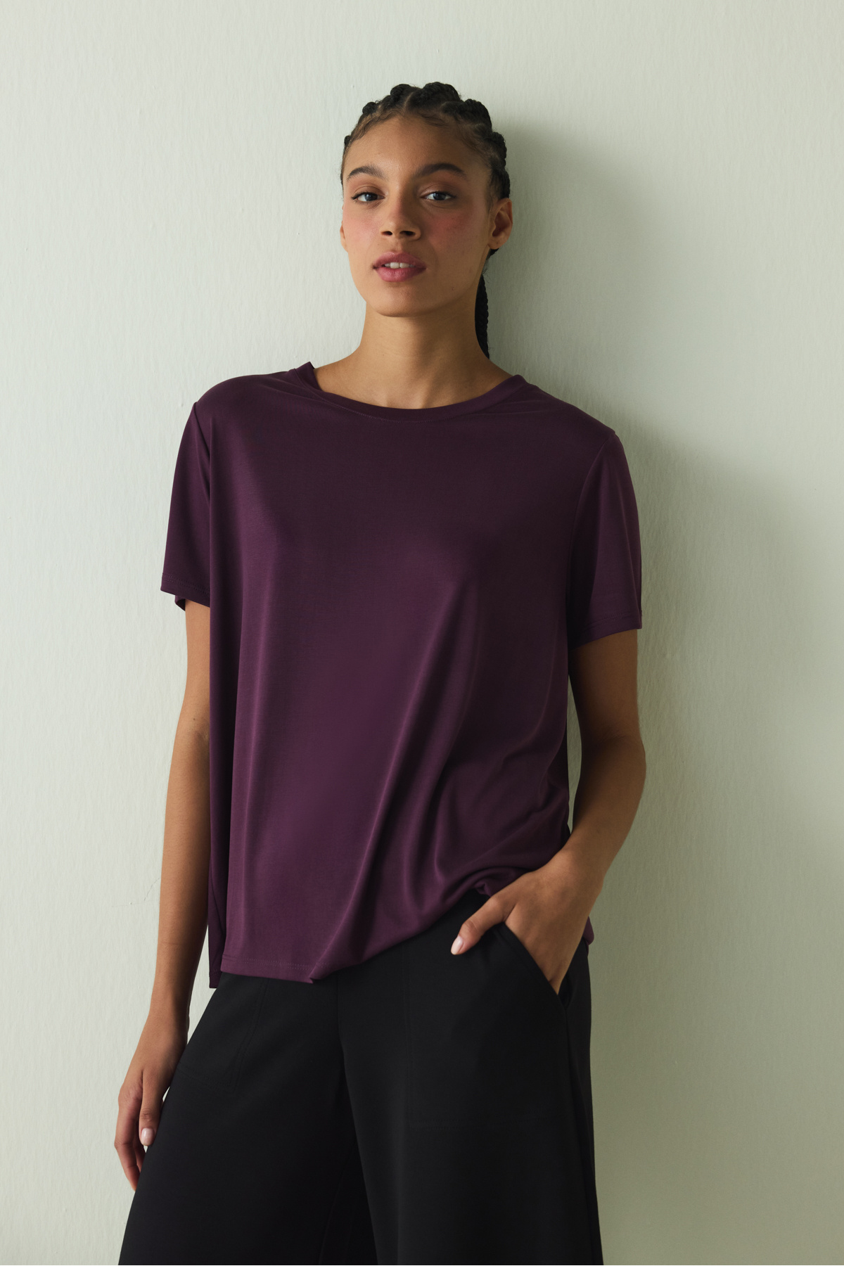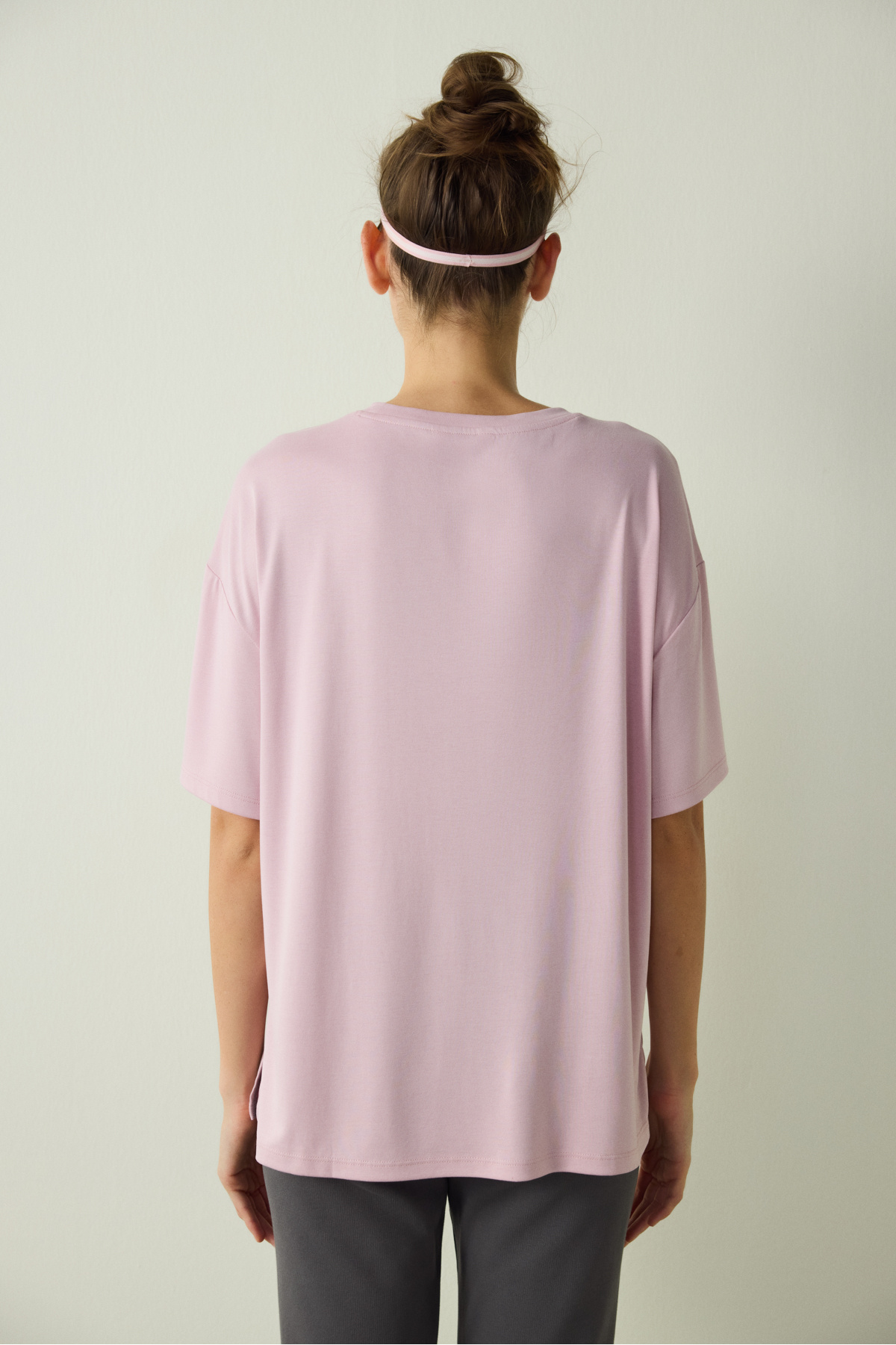 Lila Bisiklet Yaka Dikiş Detaylı Modal Oversize Tişört Lila Bisiklet Yaka Dikiş Detaylı Modal Oversize Tişört PHJVQQN725SK-LA37 XL