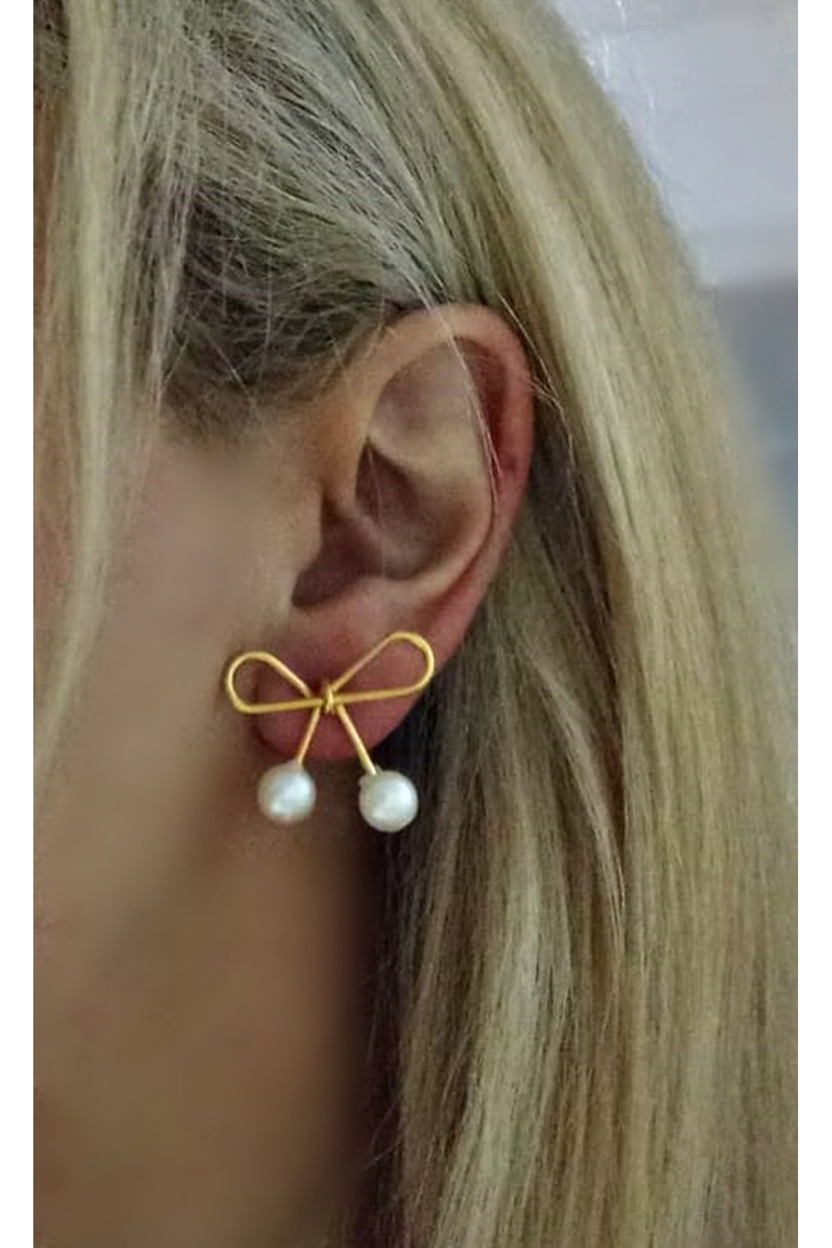 Kadın Gold Fiyonk İncili Küpe Kadın Gold Fiyonk İncili Küpe RibbonküpeMio تک سایز