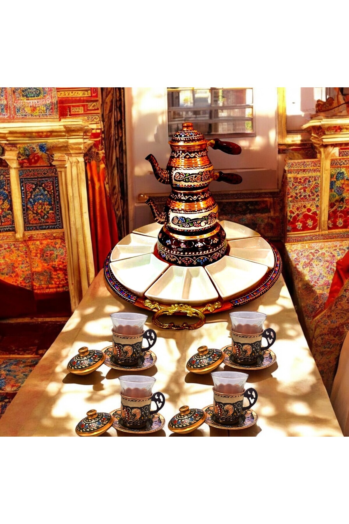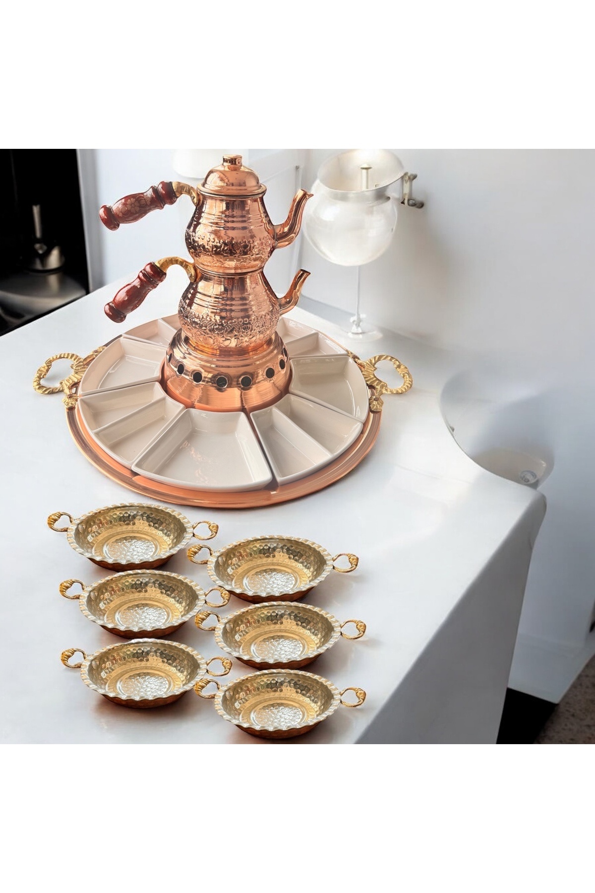 Bakır Çaydanlıklı Sahan Tava Sunum tepsili Kahvaltı takımı Bakır Çaydanlıklı Sahan Tava Sunum tepsili Kahvaltı takımı 2483345 تک سایز
