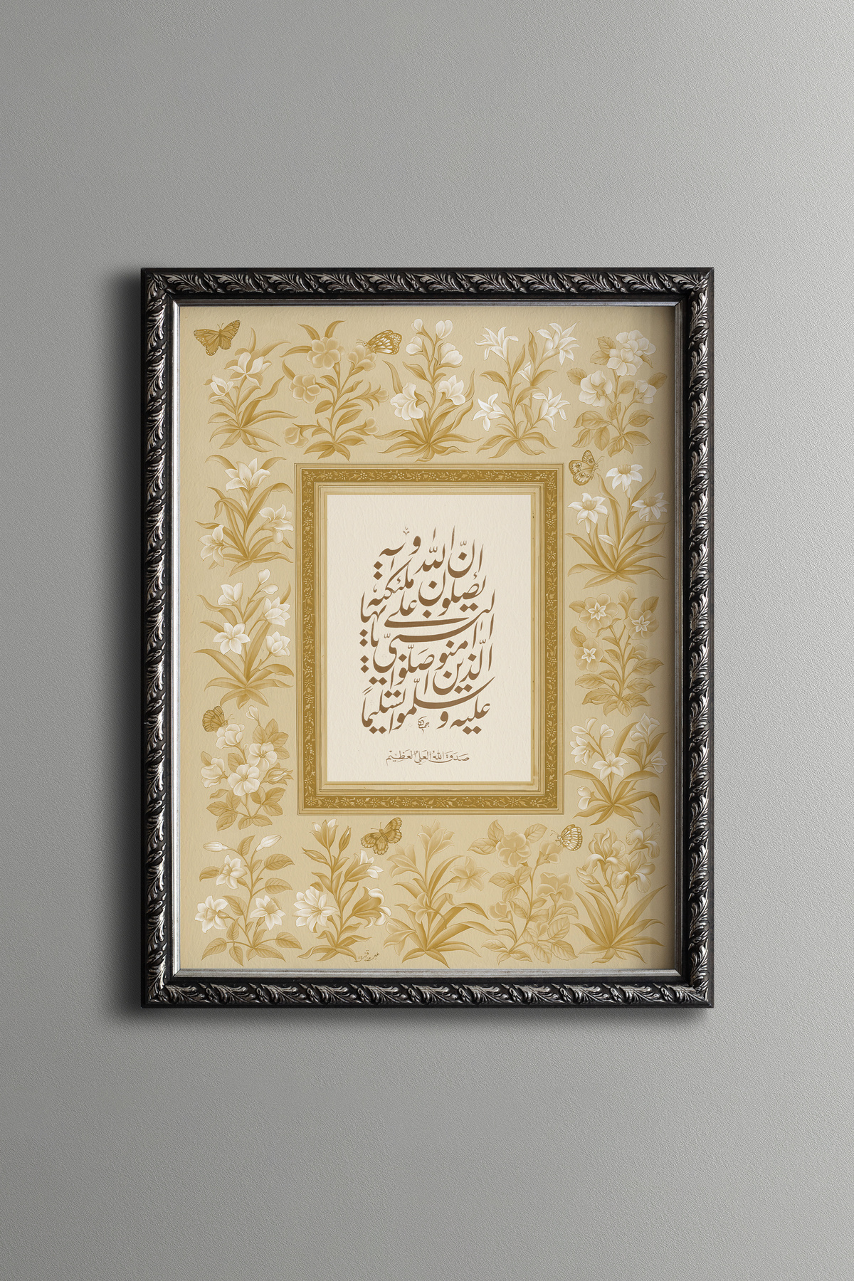 Ahzab Suresi 56. Ayet - Vintage Desenli Çerçeve Ahzab Suresi 56. Ayet - Vintage Desenli Çerçeve art20193 30 x 40