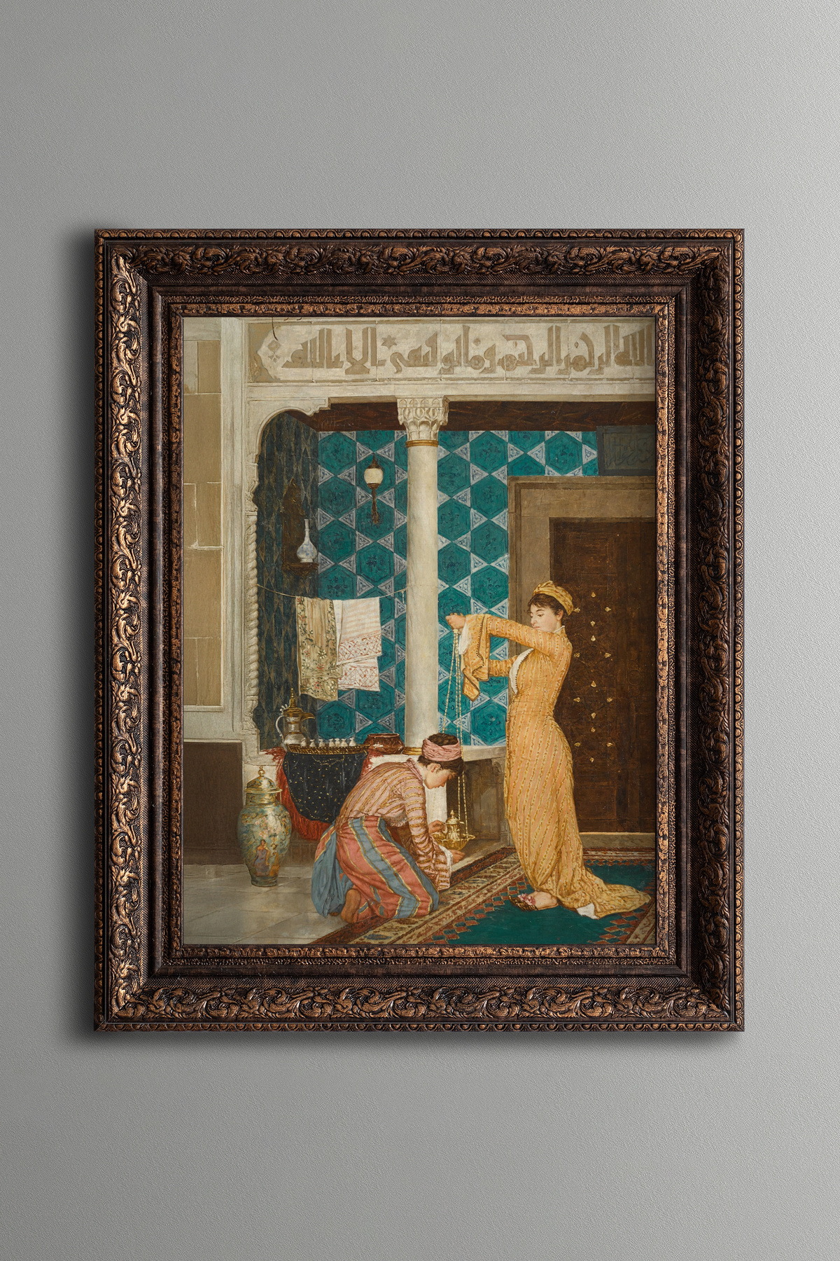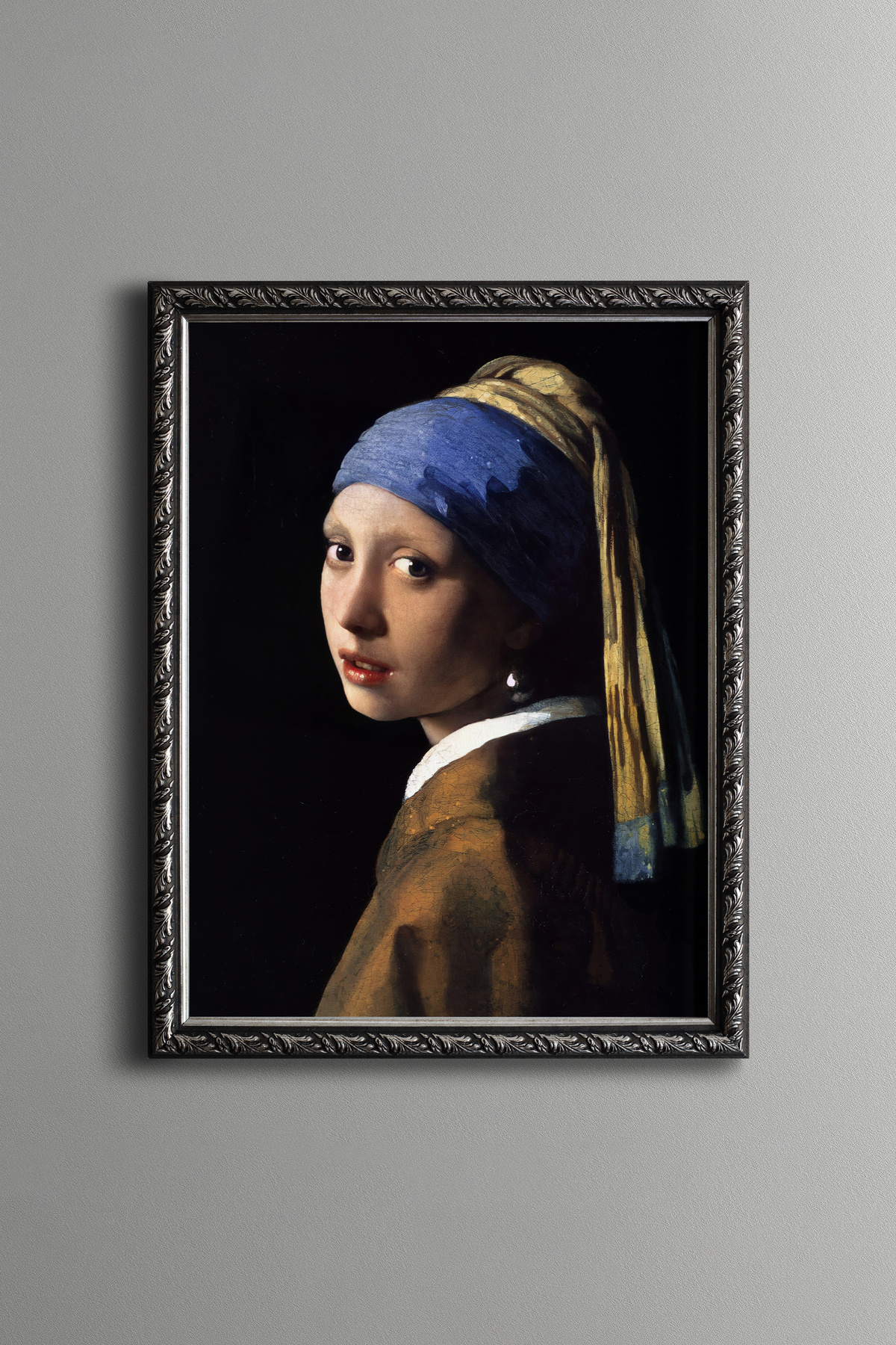 İnci Küpeli Kız - Vintage Desenli Çerçeve İnci Küpeli Kız - Vintage Desenli Çerçeve art20098 30 x 40