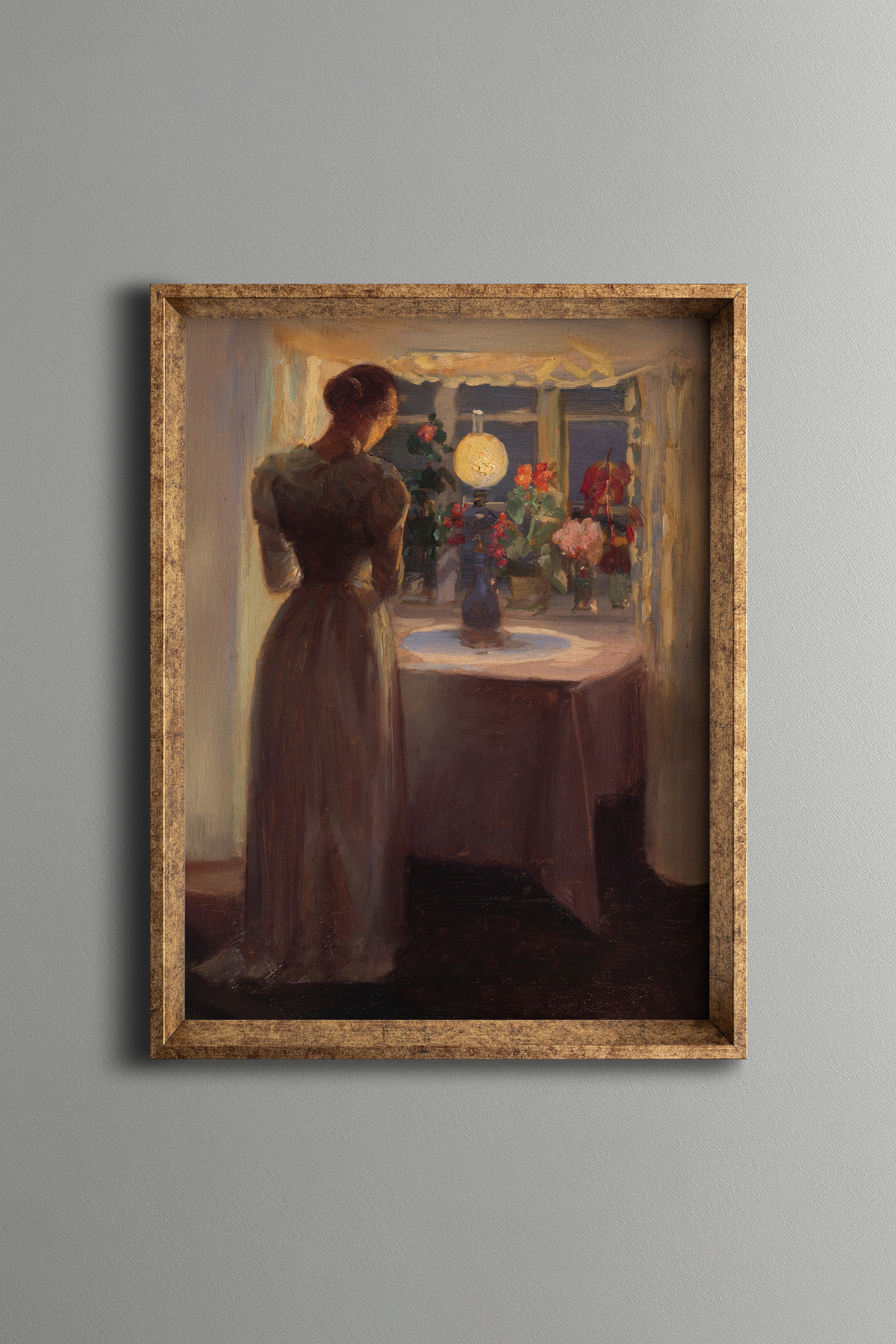 Lambanın Önündeki Genç Kız - Vintage Desenli Çerçeve Lambanın Önündeki Genç Kız - Vintage Desenli Çerçeve art20333 30 x 40