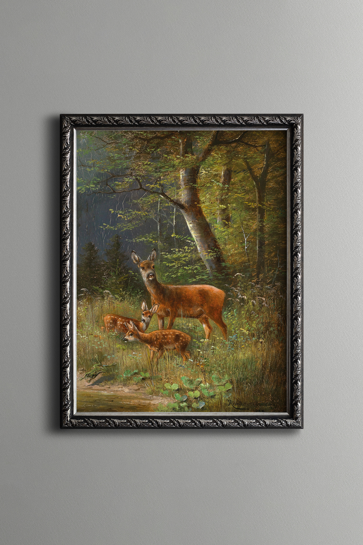 Kızıl Geyik Ailesi - Vintage Desenli Çerçeve Kızıl Geyik Ailesi - Vintage Desenli Çerçeve art20007 30 x 40