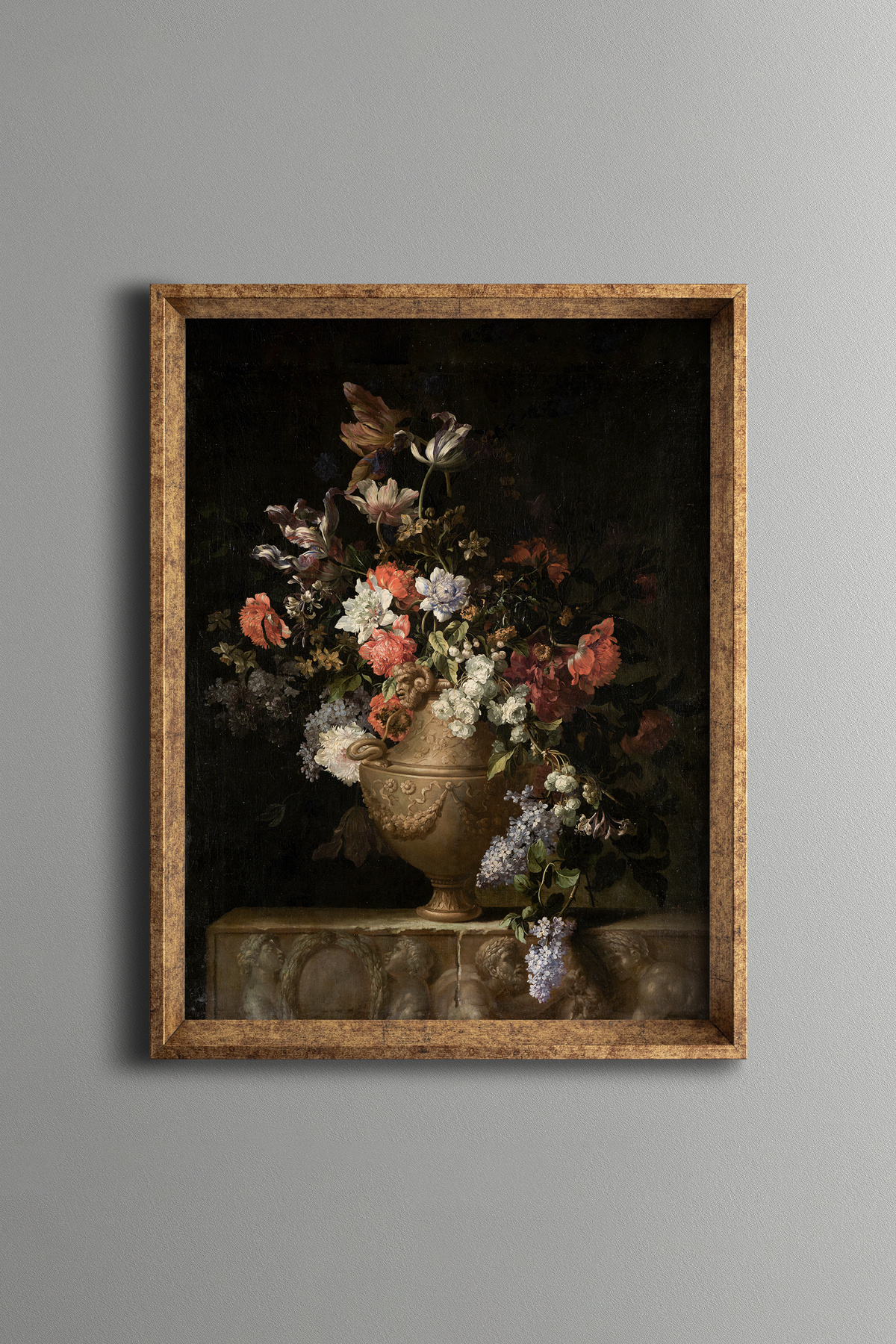 Vazodaki Çiçekler - Vintage Desenli Çerçeve Vazodaki Çiçekler - Vintage Desenli Çerçeve art20564 30 x 40