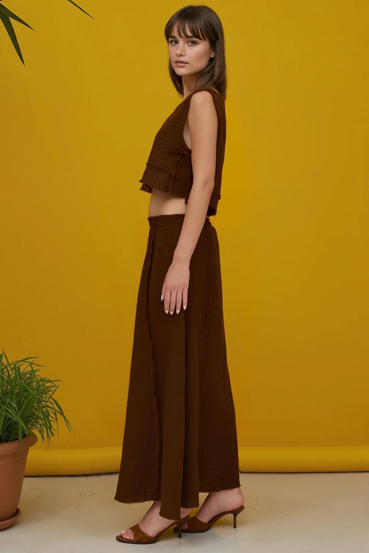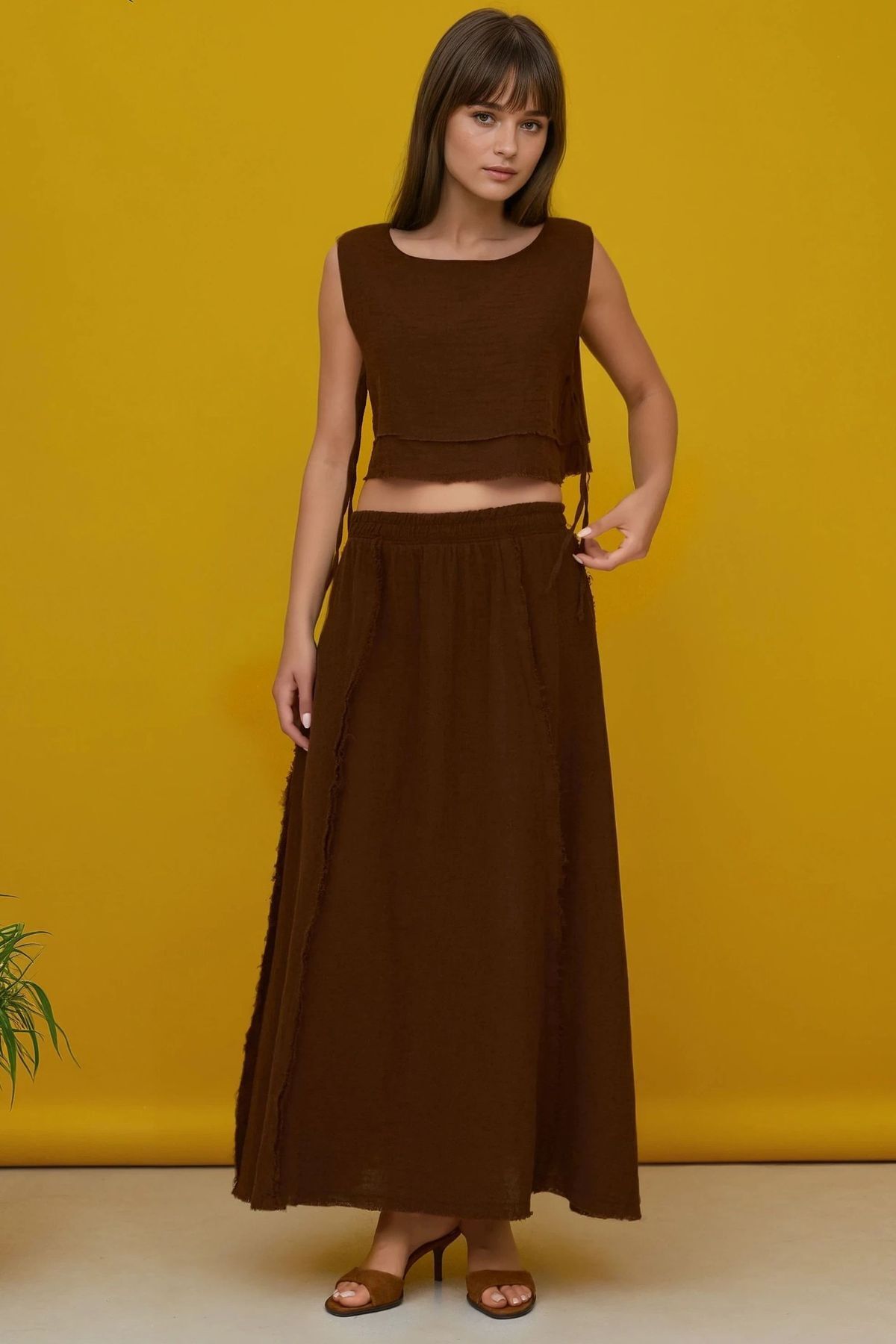 Beli Lastikli Etek-Yandan Bağlama Detaylı Bluz Müslin Takım Beli Lastikli Etek-Yandan Bağlama Detaylı Bluz Müslin Takım MDMQNXNO XL