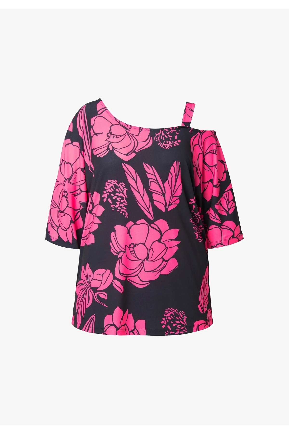 Kadın Büyük Beden Siyah, Fujya Çiçek Desenli Tek Omuz Askılı Bluz 65N39095 Kadın Büyük Beden Siyah, Fujya Çiçek Desenli Tek Omuz Askılı Bluz 65N39095 62