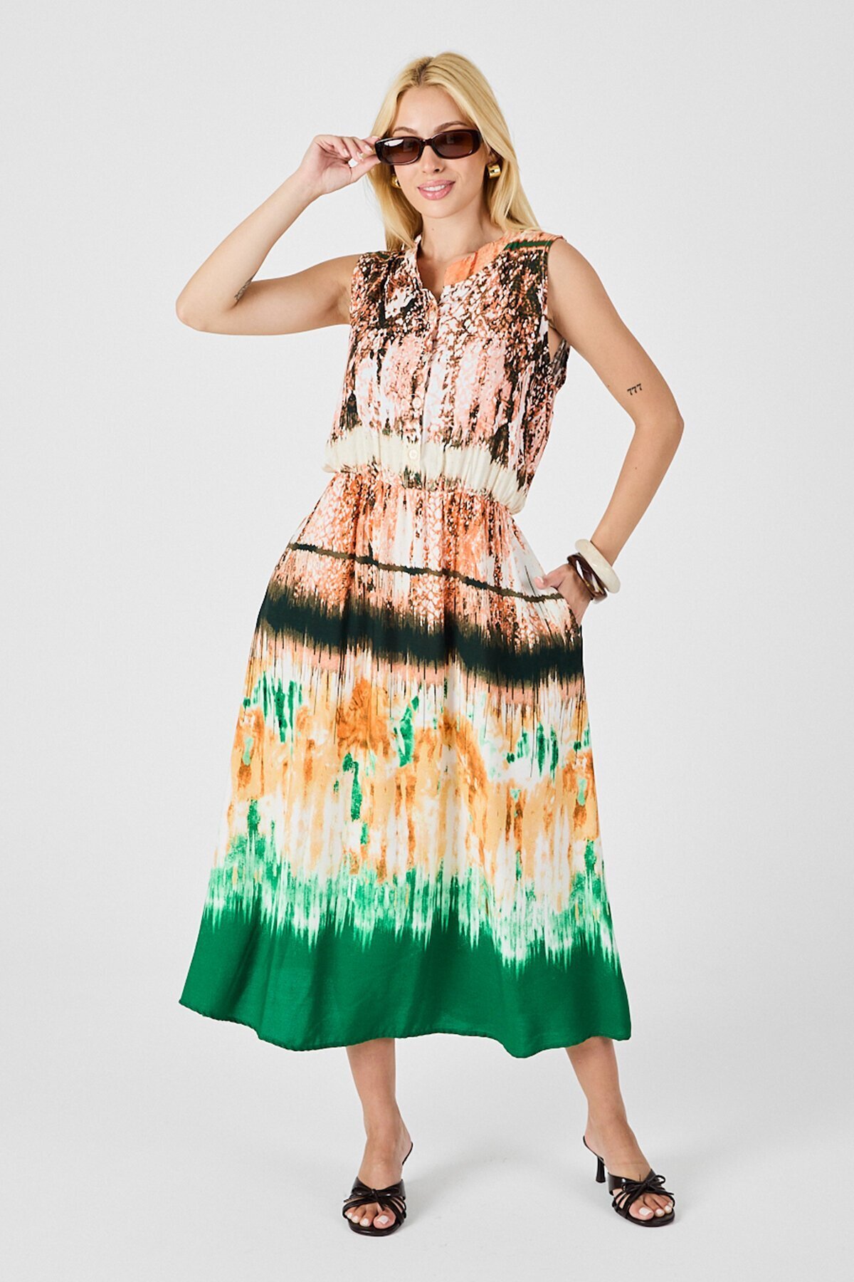 Kadın Yeşil-Krem Çentik Yaka Düğmeli Desenli Kolsuz Midi Elbise Vs00831 Kadın Yeşil-Krem Çentik Yaka Düğmeli Desenli Kolsuz Midi Elbise Vs00831 VS00831 XL