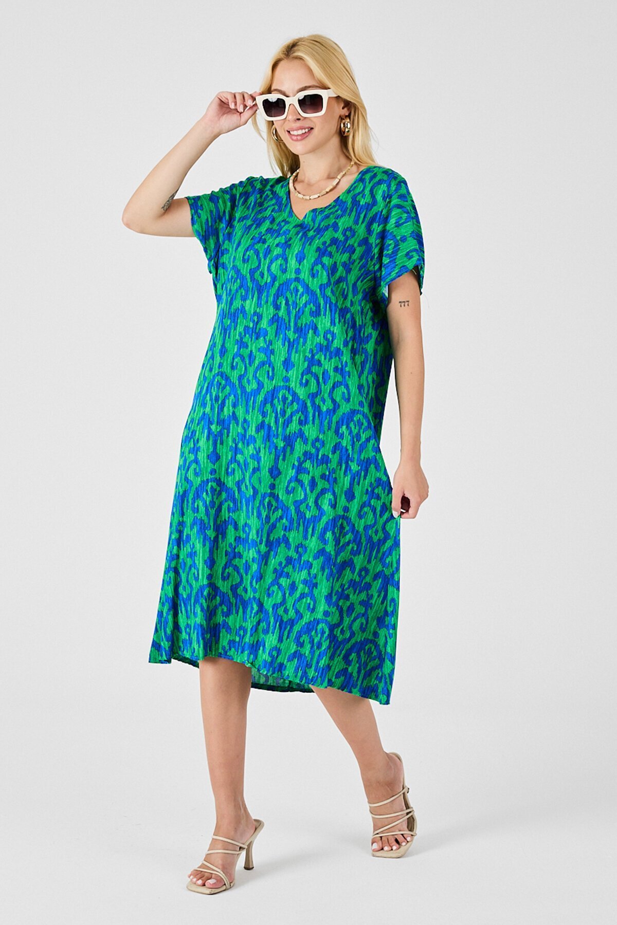 Kadın Yeşil Mavi Desenli V Yaka Midi Boy Elbise Vs00819 Kadın Yeşil Mavi Desenli V Yaka Midi Boy Elbise Vs00819 VS00819 XL