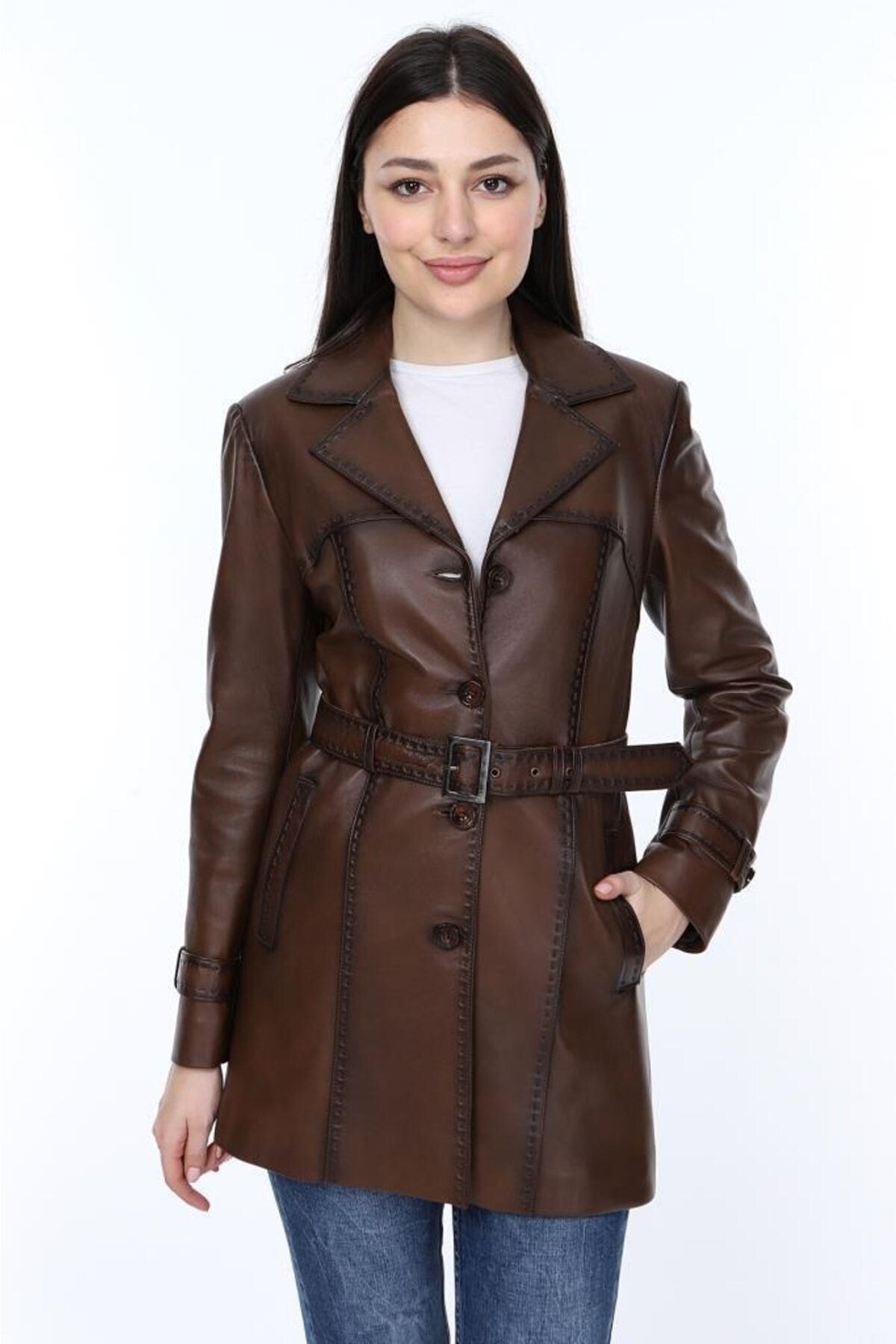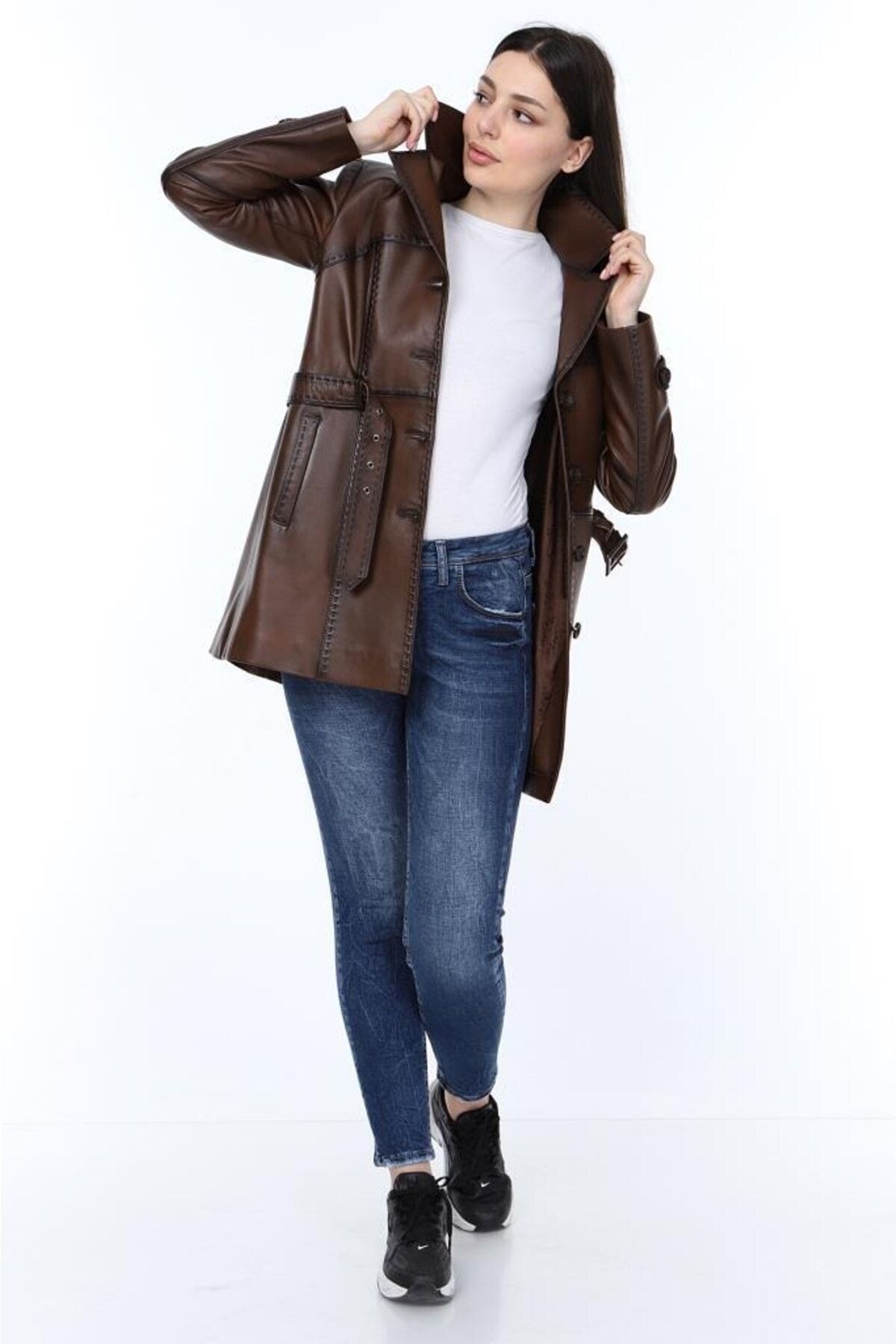 Hakiki Deri Kahverengi Lavinia Kadın Ceket Hakiki Deri Kahverengi Lavinia Kadın Ceket dw-12465004-199344 3XL
