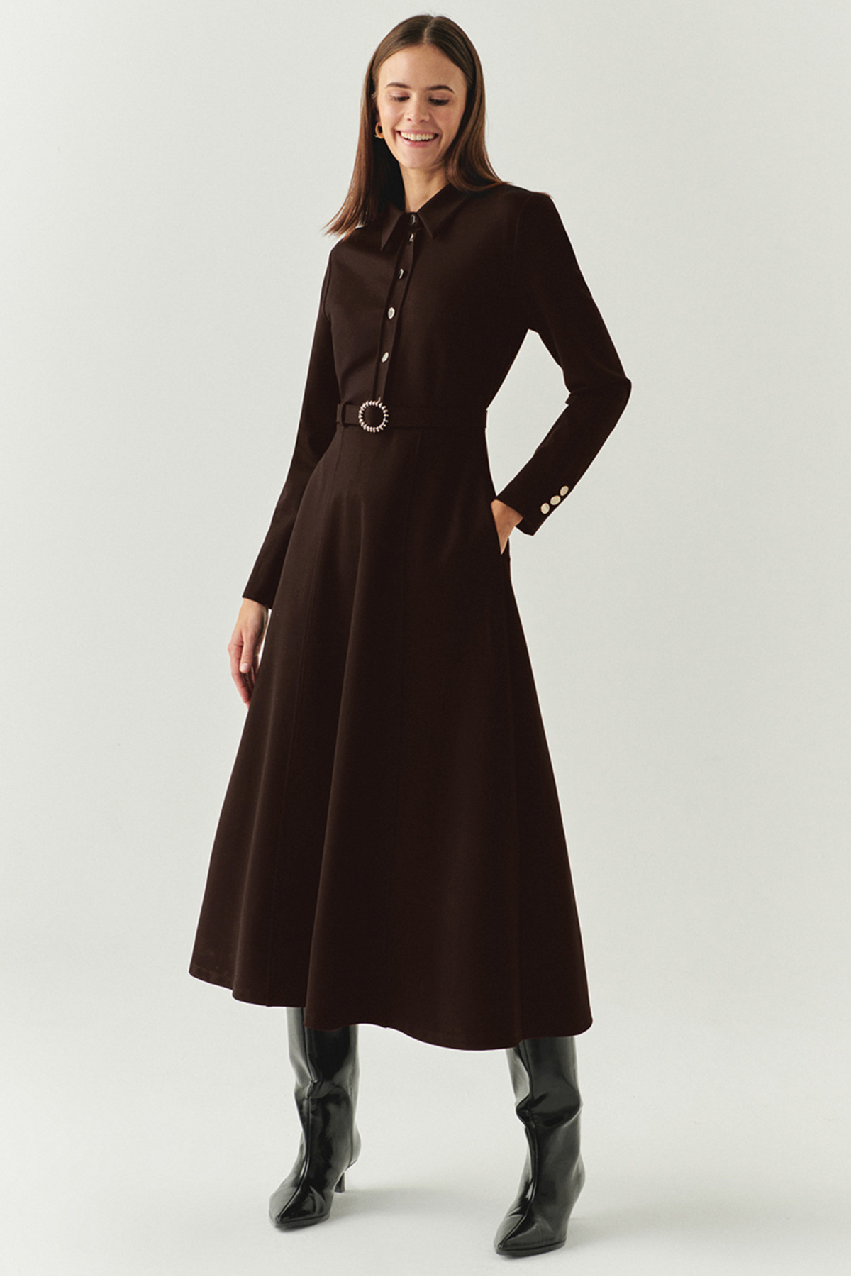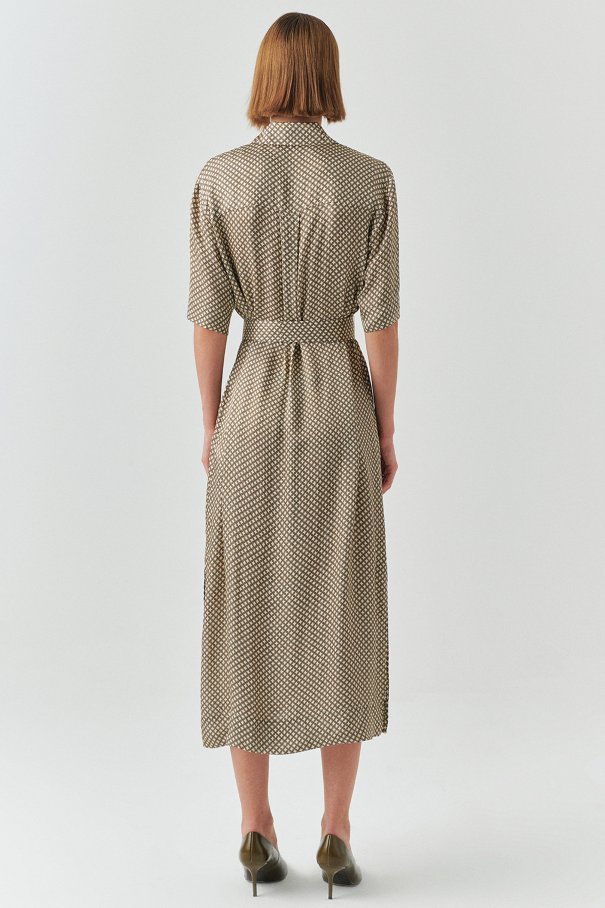 Kuşaklı Desenli Gömlek Yaka Kısa Kollu Regular Midi Elbise Kuşaklı Desenli Gömlek Yaka Kısa Kollu Regular Midi Elbise E25K05118003 44