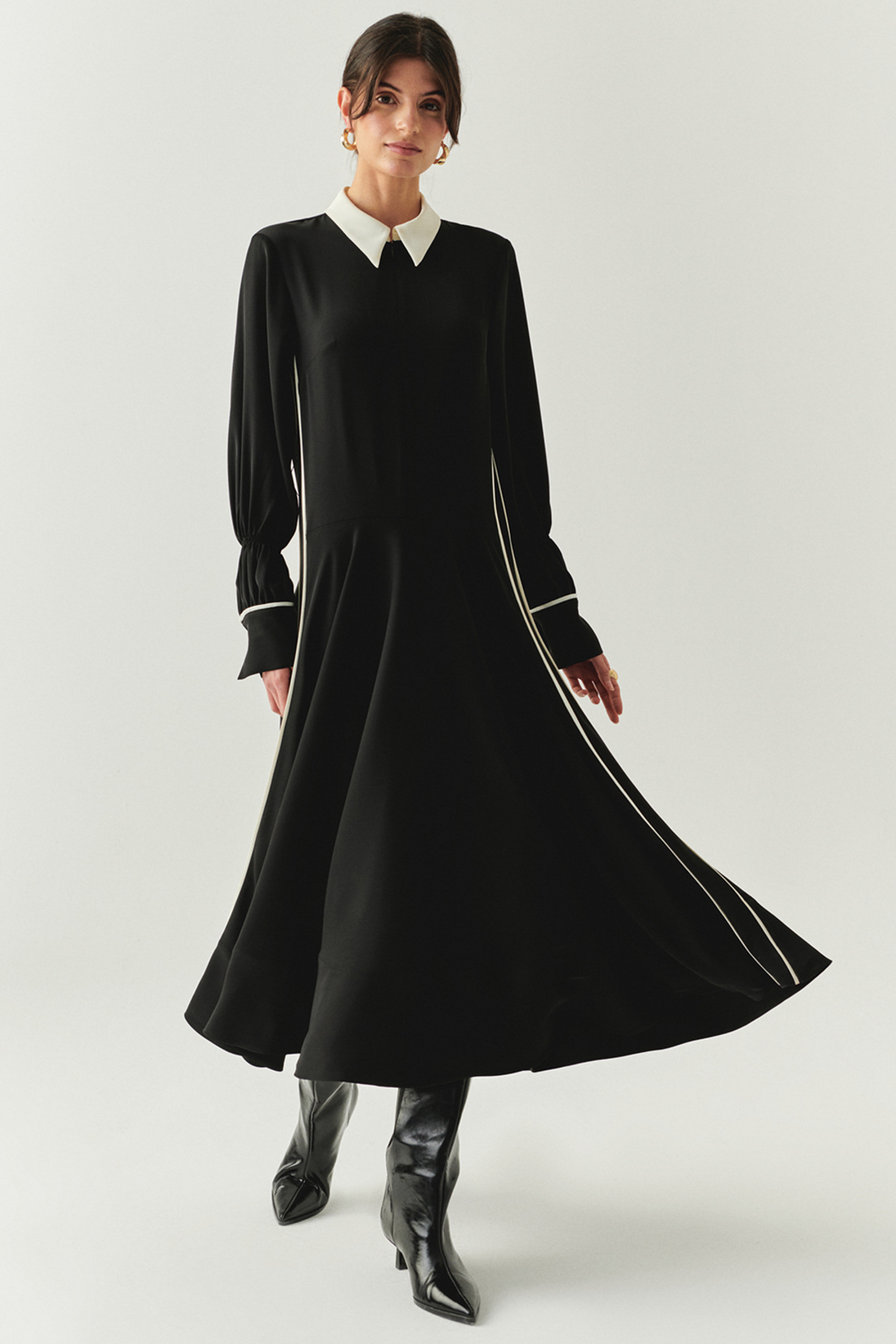 Uzun Kollu Kuşaklı Düşük Bel Regular Siyah Midi Elbise Uzun Kollu Kuşaklı Düşük Bel Regular Siyah Midi Elbise E25K05118002 44