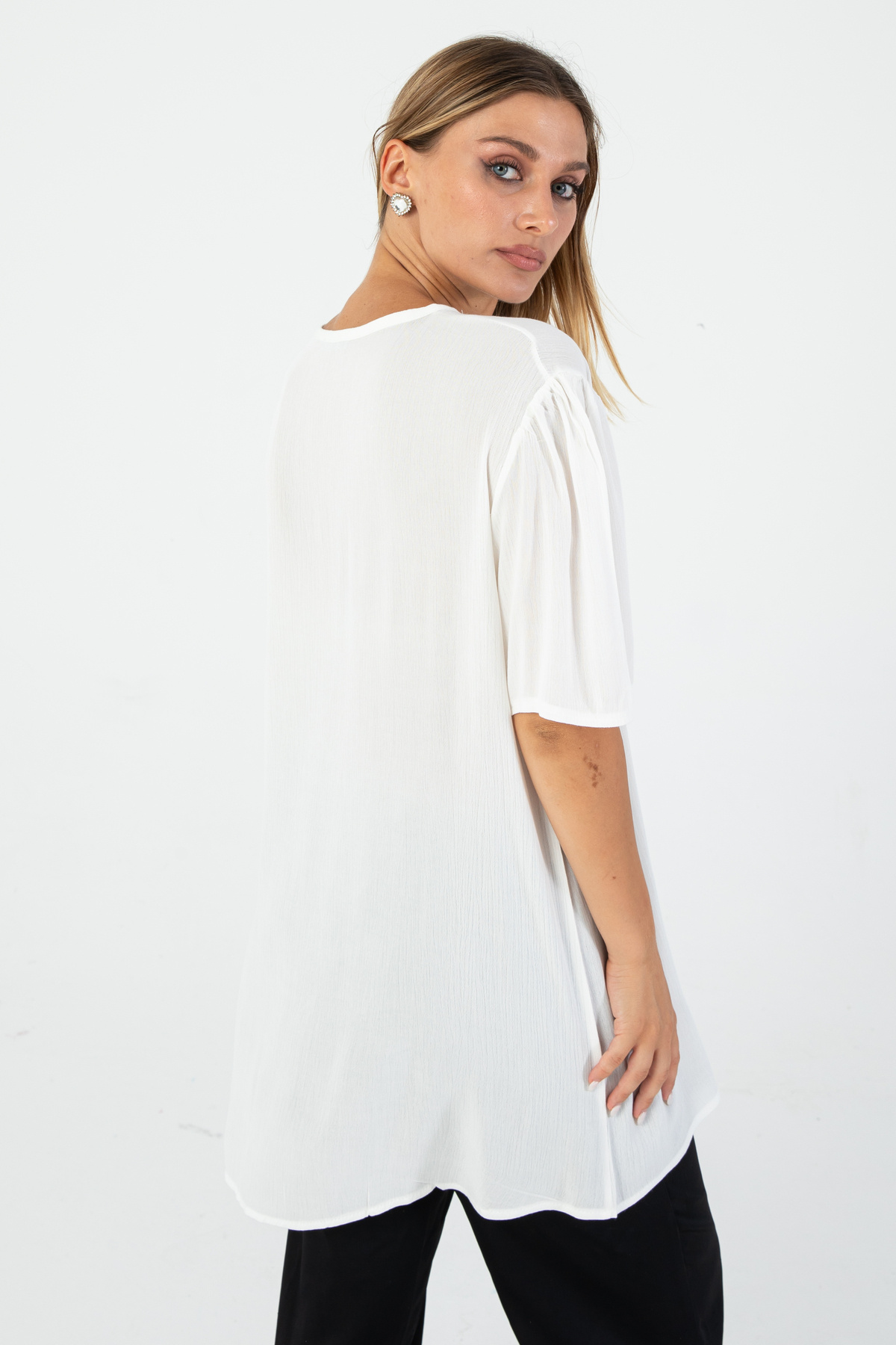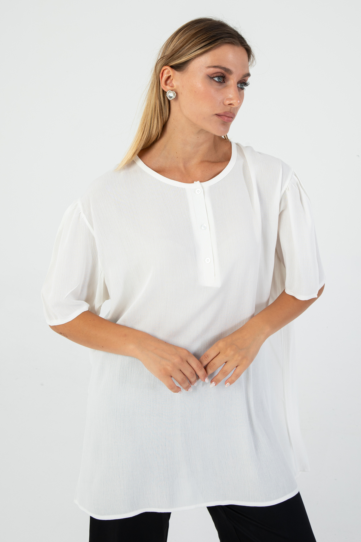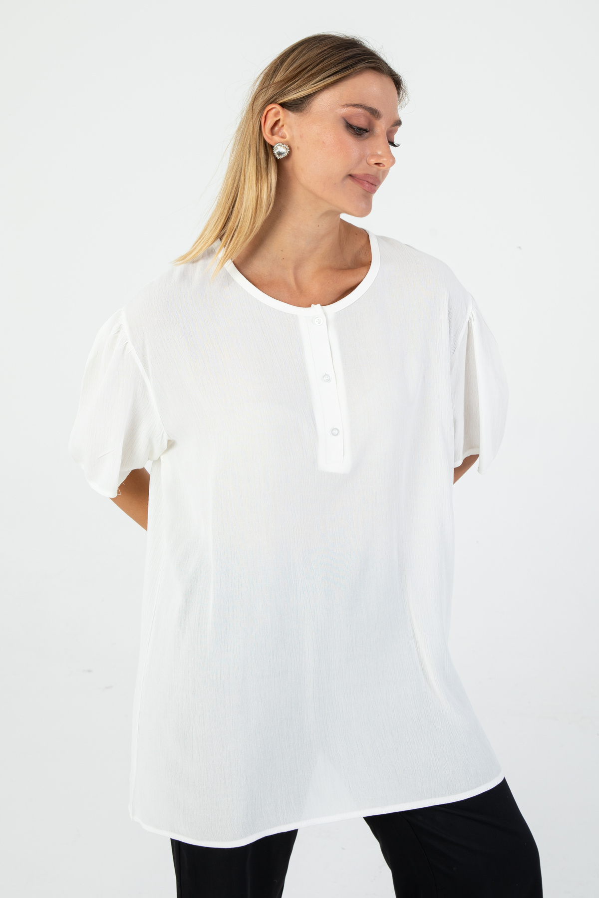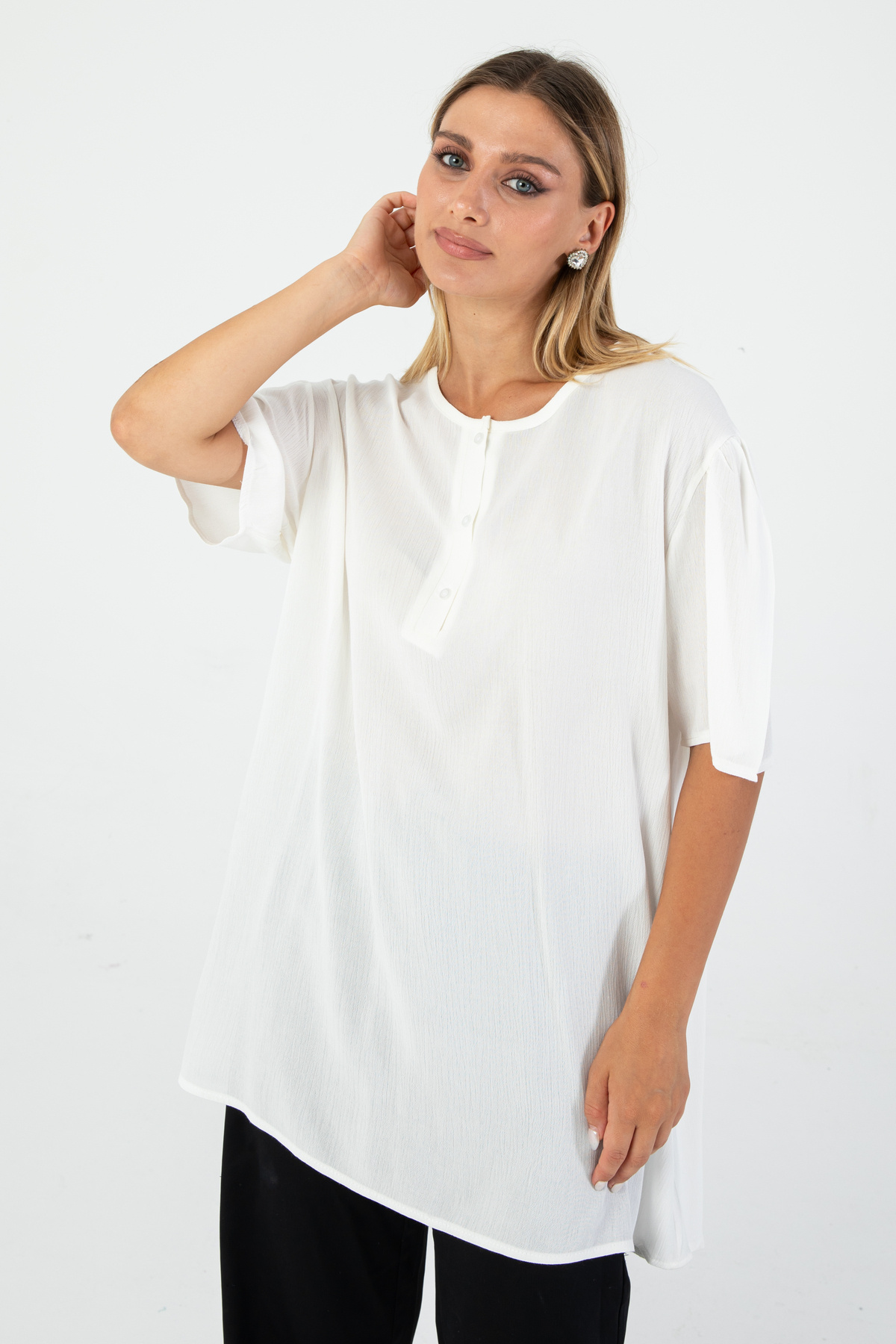 Büyük Beden Kadın Beyaz Hakim Yaka Yarım Kol Salaş Düğmeli Bluz Büyük Beden Kadın Beyaz Hakim Yaka Yarım Kol Salaş Düğmeli Bluz 1500126 3XL