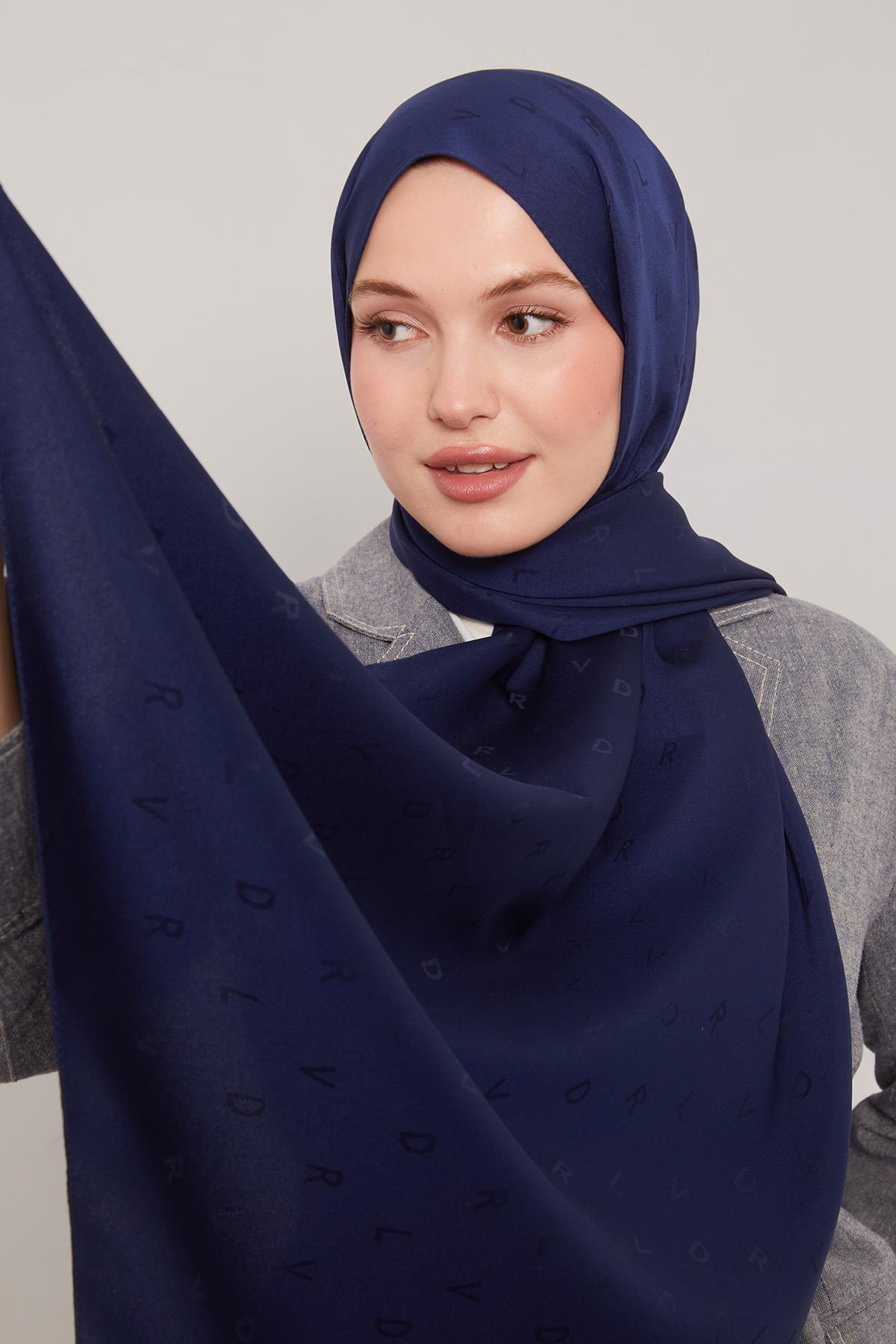 Lacivert Mini LVD Baskılı Jakarlı Şal Lacivert Mini LVD Baskılı Jakarlı Şal LVD.JKR.0019 75 x 195