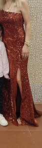 Trend Kadife Yırtmaçlı Elbise KİREMİT 583150 Trend Kadife Yırtmaçlı Elbise KİREMİT 583150 BLK 46