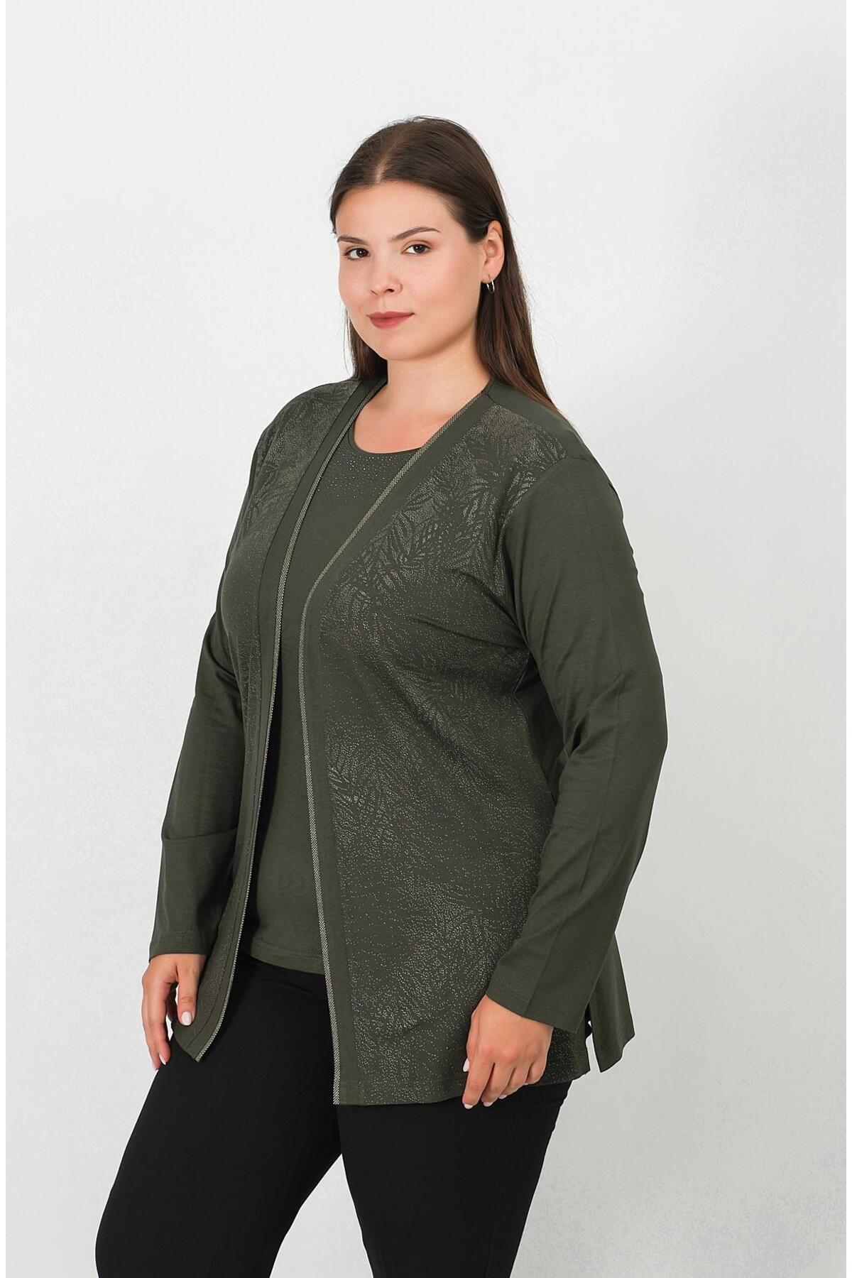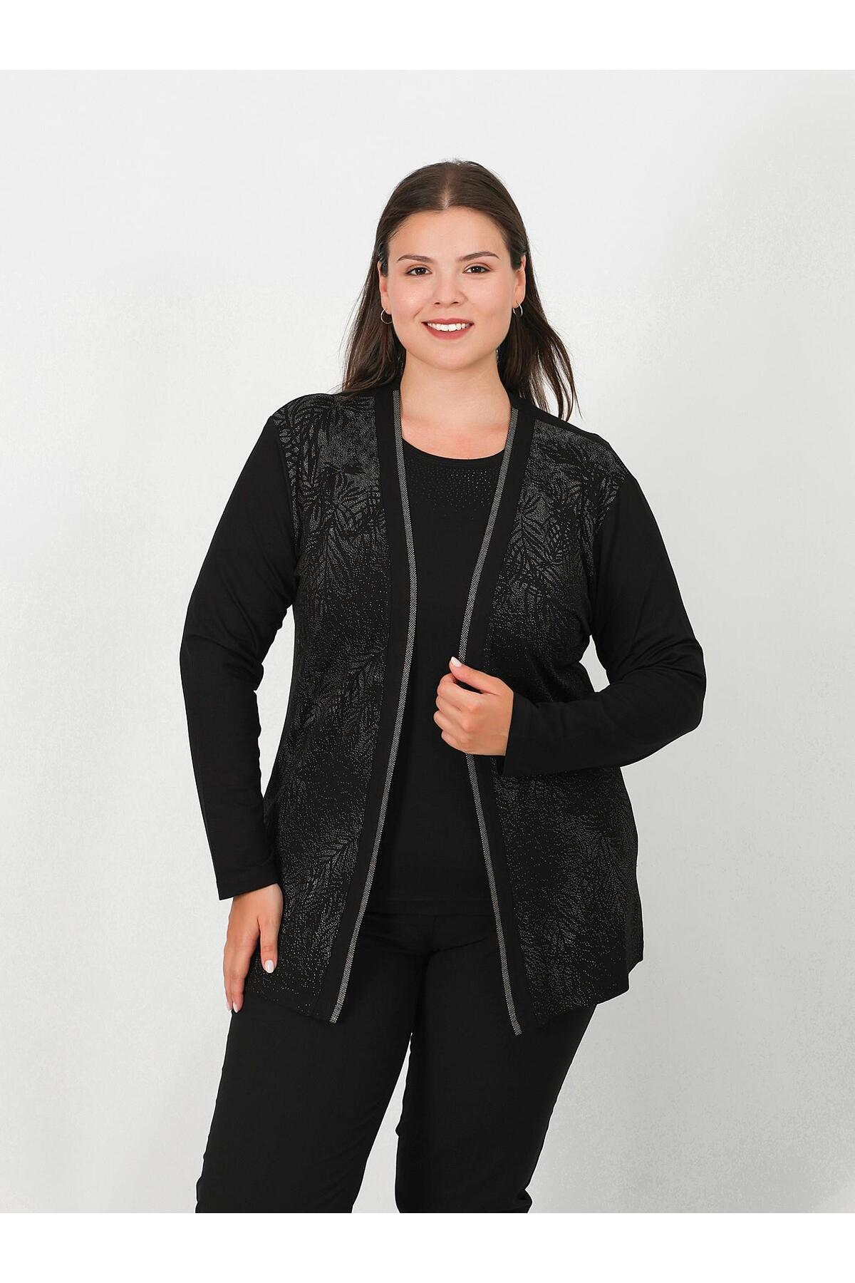 Abiye İkili Takım Simli ve Desenli Ceket ve Bluz Abiye İkili Takım Simli ve Desenli Ceket ve Bluz 2025LNZKISAABİYETKM 3XL