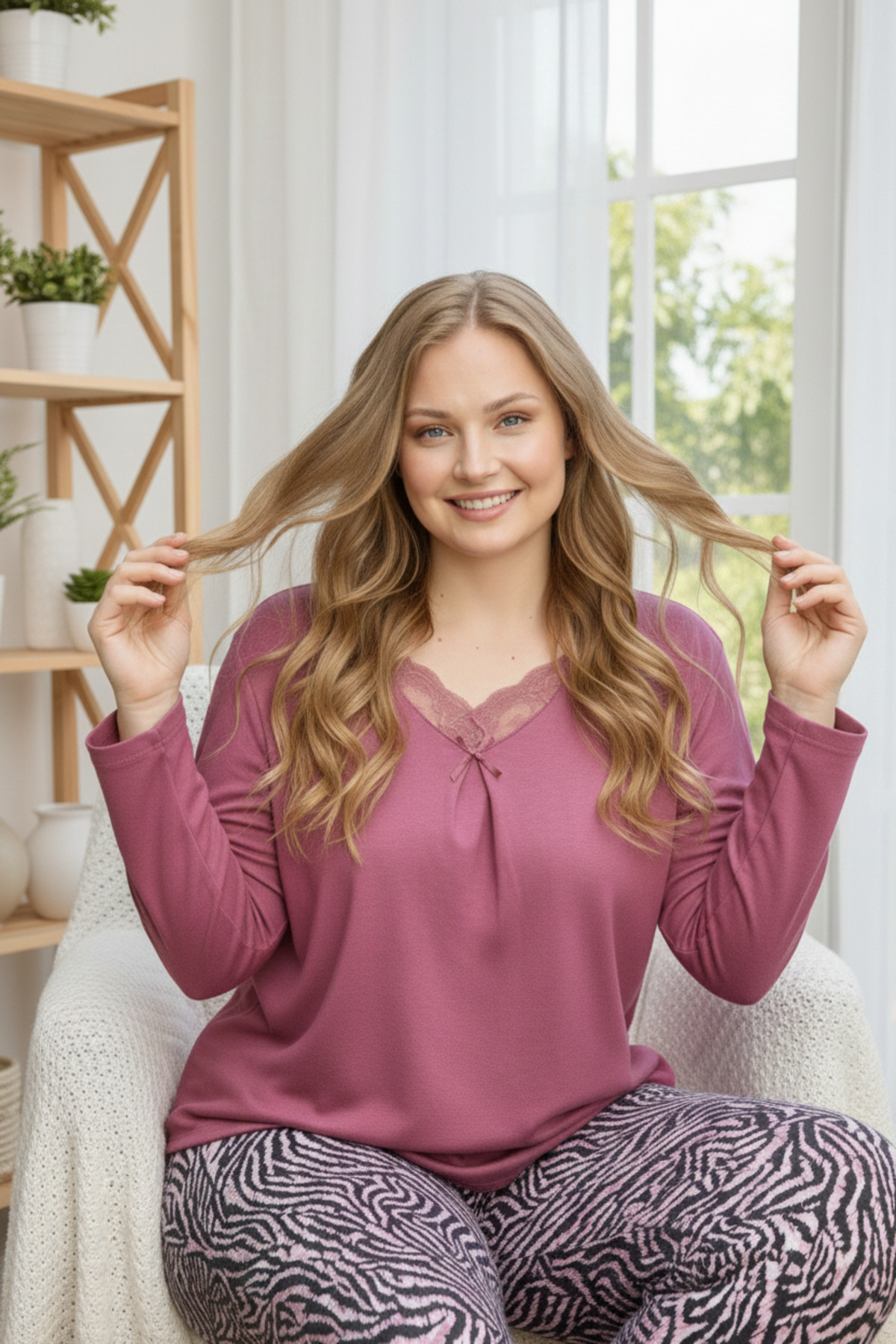 Pudra Yün Viskon Dantel Detaylı Uzun Kol Büyük Beden Pijama Takım Pudra Yün Viskon Dantel Detaylı Uzun Kol Büyük Beden Pijama Takım 2306 5XL