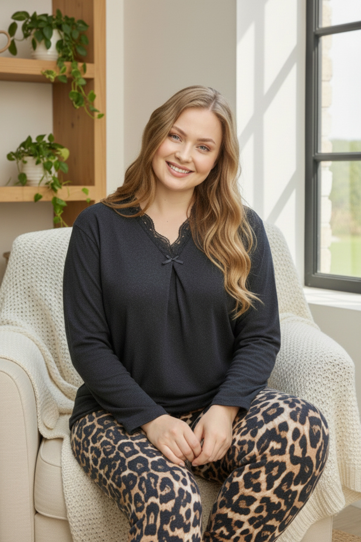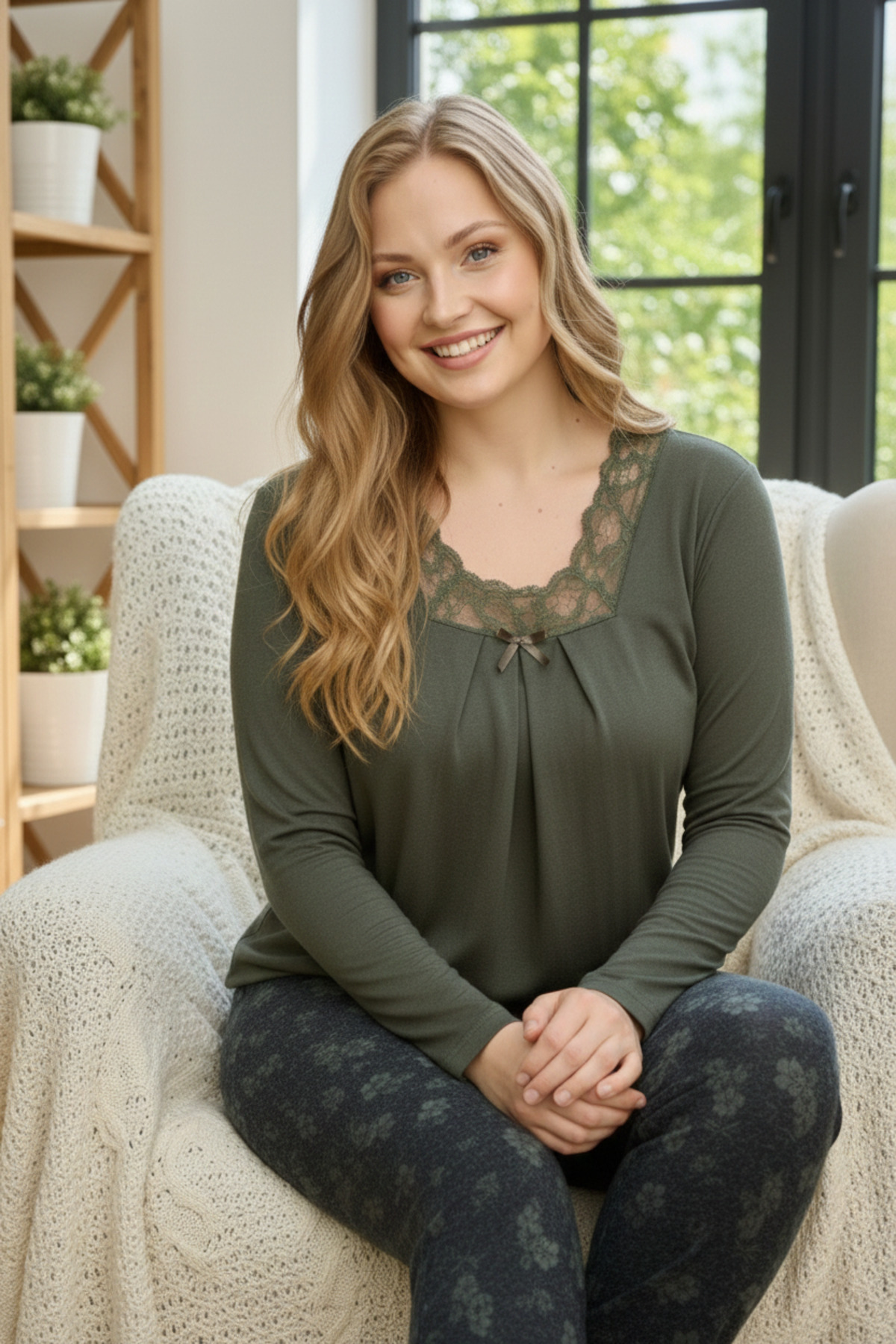 Bordo Yün Viskon Dantel Detaylı Uzun Kol Büyük Beden Pijama Takım Bordo Yün Viskon Dantel Detaylı Uzun Kol Büyük Beden Pijama Takım 2306 5XL