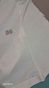 Taş İşlemeli V Yaka Örme Beyaz Tişört Taş İşlemeli V Yaka Örme Beyaz Tişört A25Y05276018 L