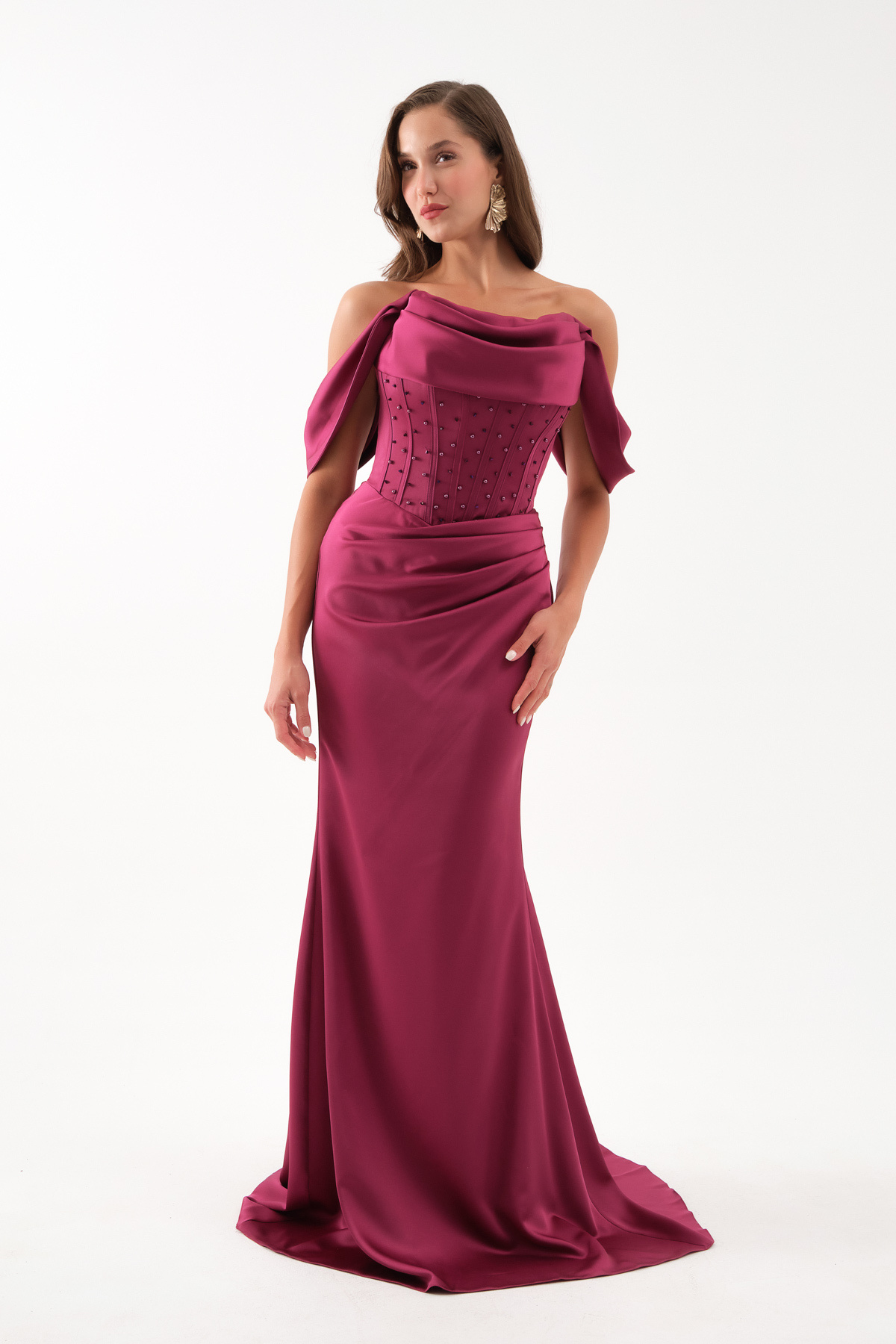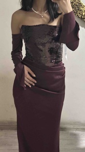 Bordo Üstü Payet Altı Krep Abiye Bordo Üstü Payet Altı Krep Abiye P-0000016707 42