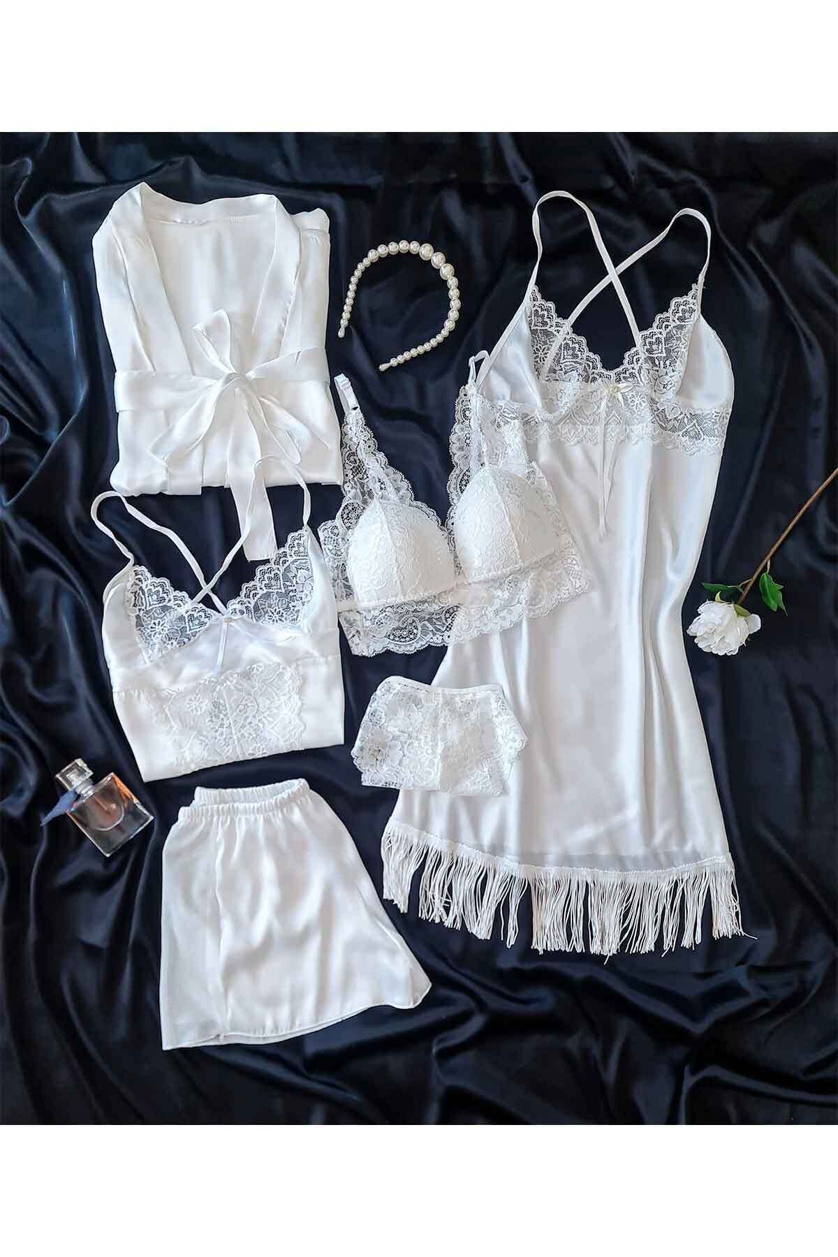 6 Parça Bordo Laurel Kadın Saten Gecelik Sabahlık Çeyiz Seti 6 Parça Bordo Laurel Kadın Saten Gecelik Sabahlık Çeyiz Seti cdh6950 XL