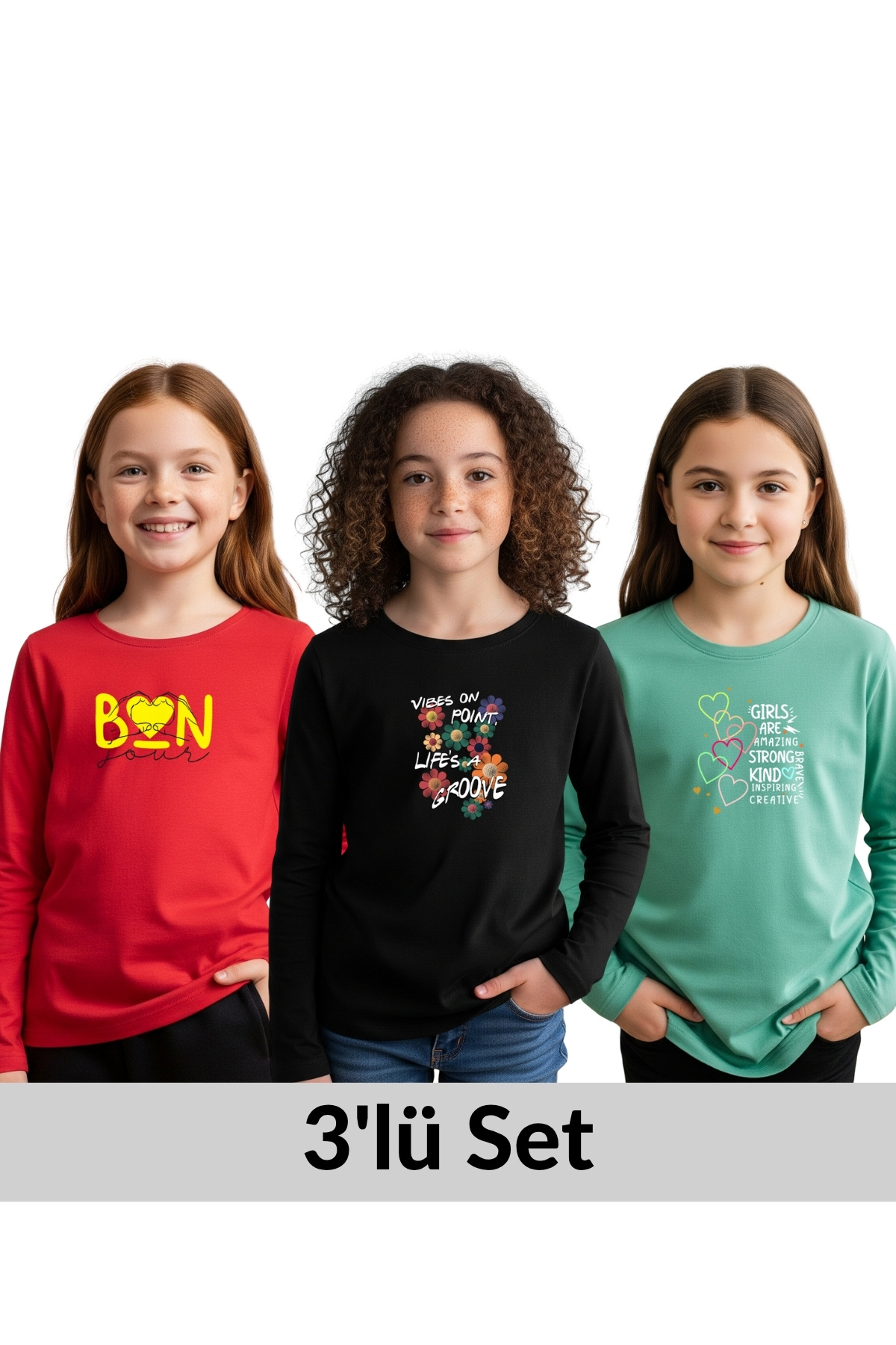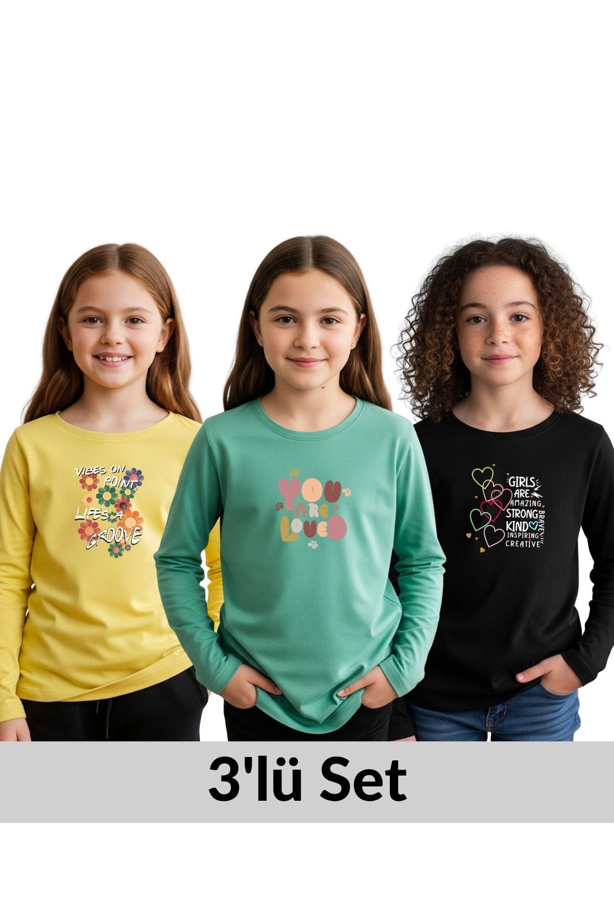 3'LÜ YUVARLAK YAKA BASKI DETAYLI KIZ ÇOCUK SWEATSHİRT 3'LÜ YUVARLAK YAKA BASKI DETAYLI KIZ ÇOCUK SWEATSHİRT PK01321 13 Yaş