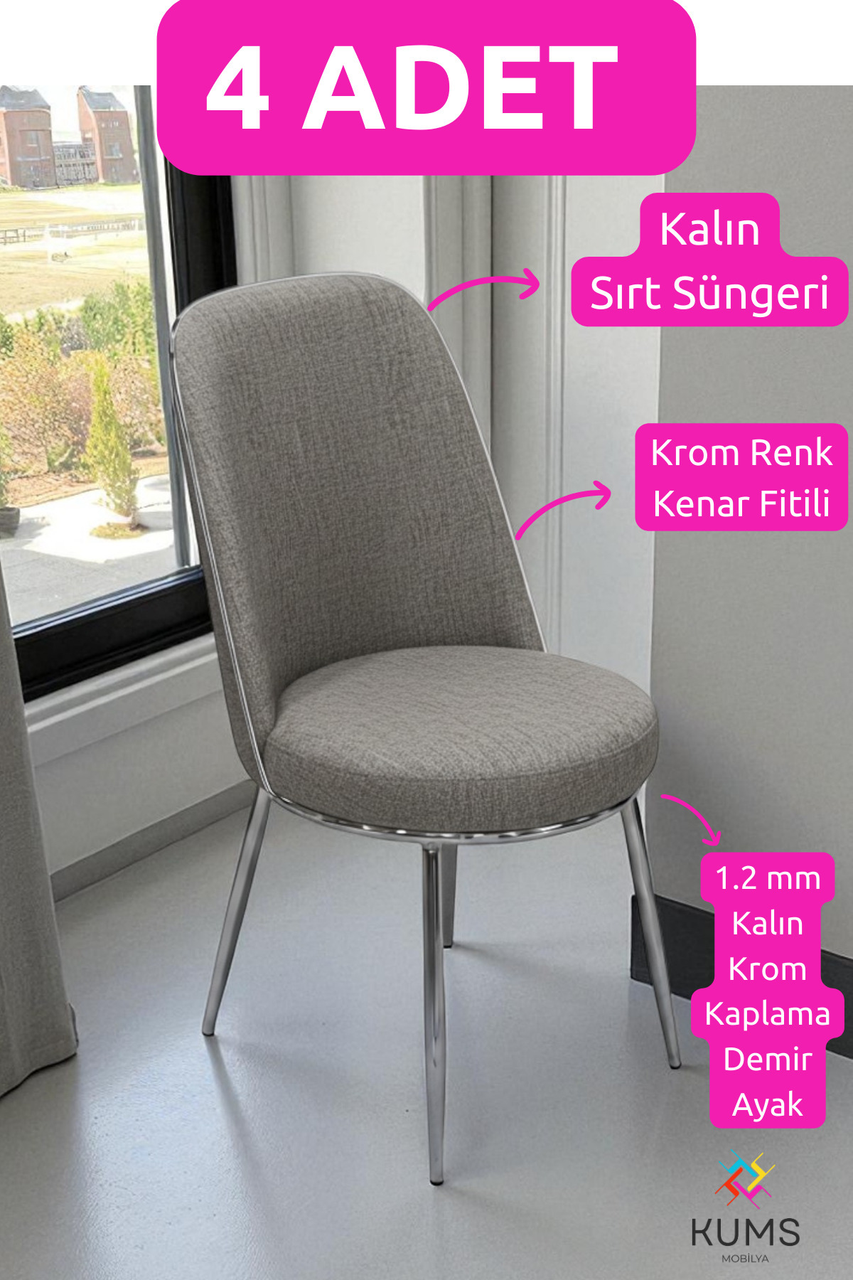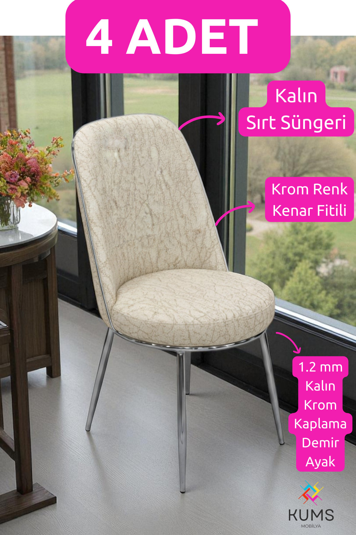 Pefa Serisi 4 Adet Krem Mutfak Sandalyesi Krom Kaplama Metal Ayak 1. Sınıf Babyface Kumaş Pefa Serisi 4 Adet Krem Mutfak Sandalyesi Krom Kaplama Metal Ayak 1. Sınıf Babyface Kumaş 22PEFA04KRM تک سایز