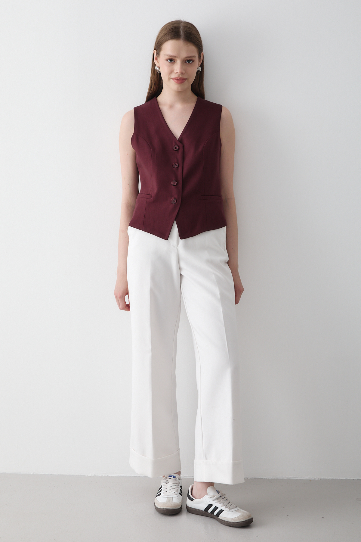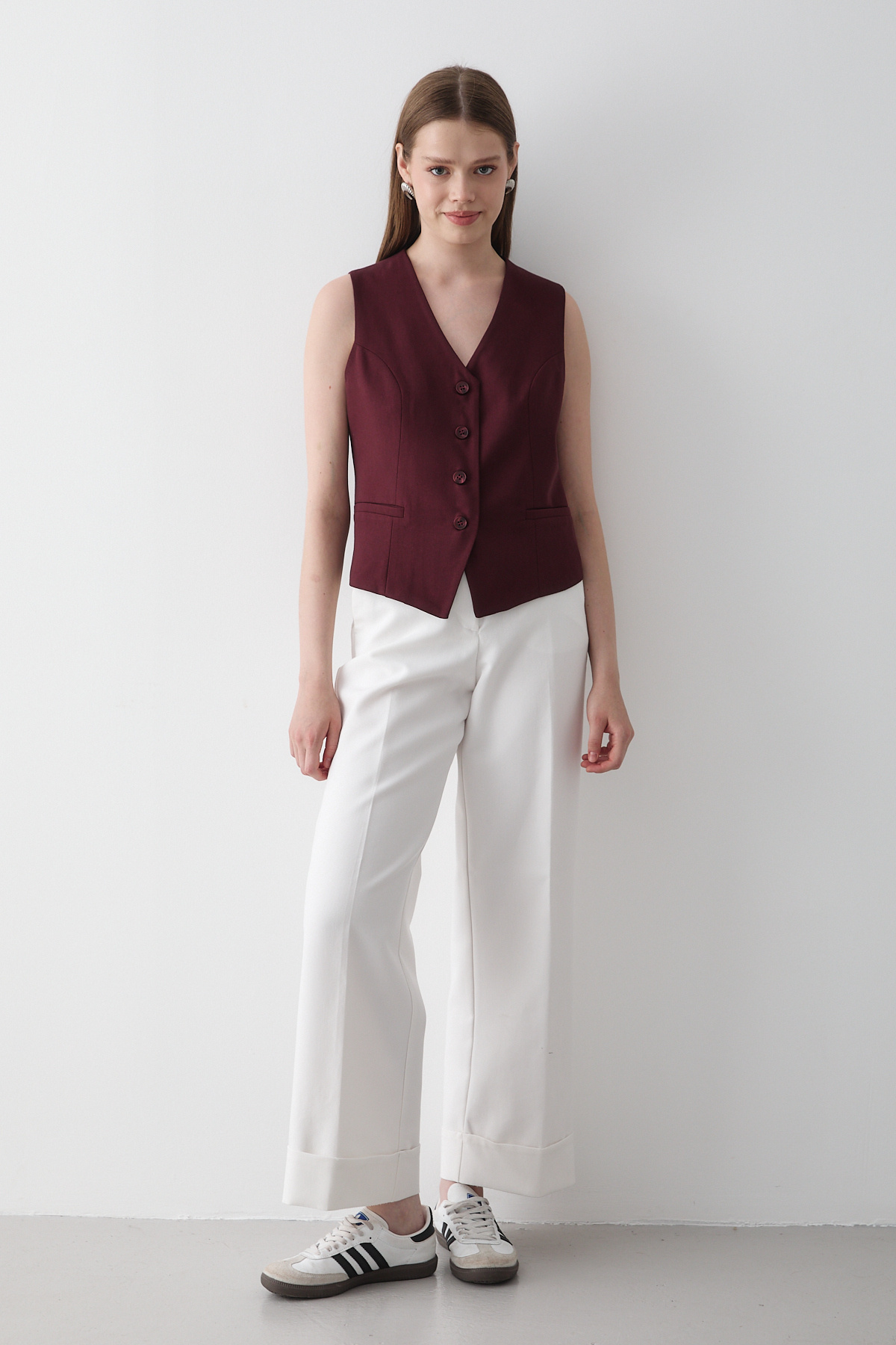 Kadın Bordo Astarlı Düğme Detaylı Yelek Kadın Bordo Astarlı Düğme Detaylı Yelek 7359 XL