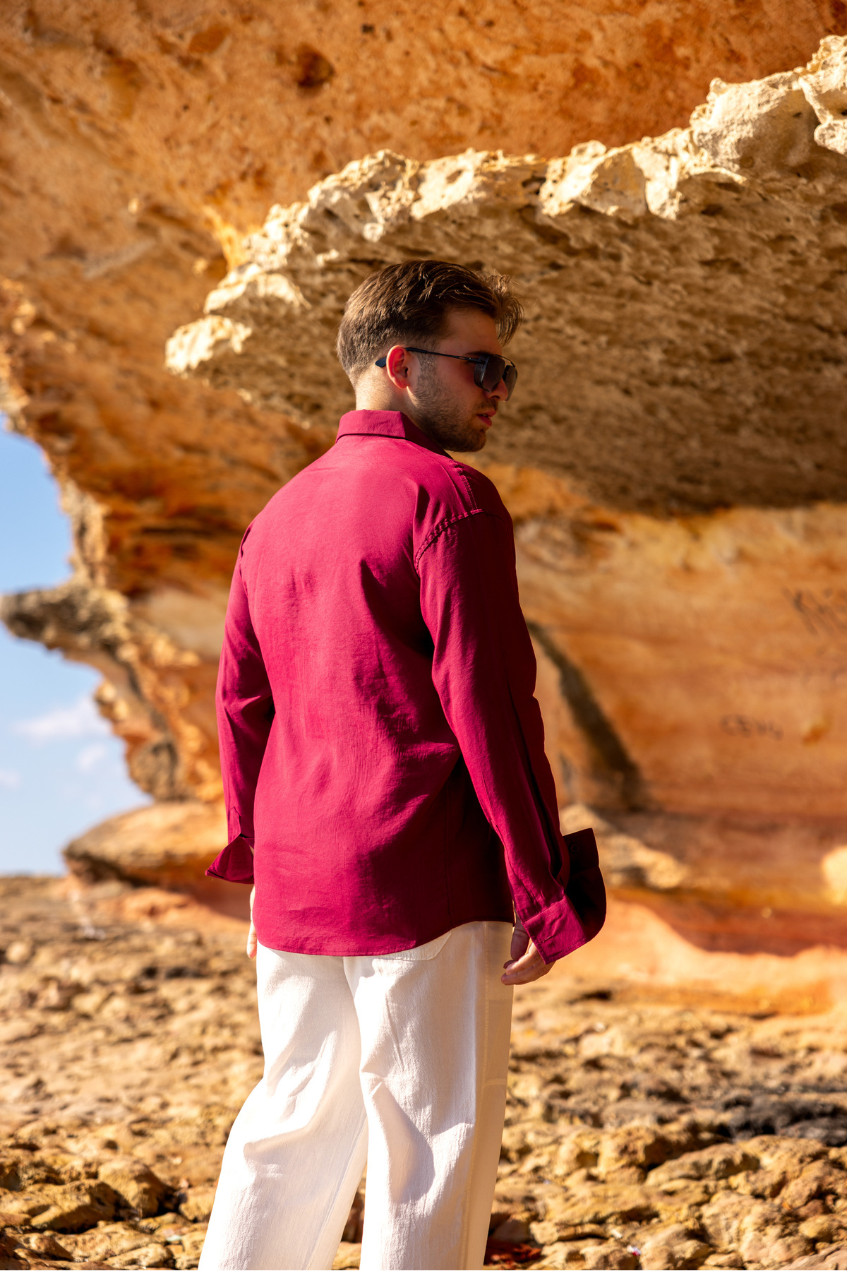 Erkek Uzun Kol Yazlık Basic Bordo Bol Gömlek Erkek Uzun Kol Yazlık Basic Bordo Bol Gömlek 29130CMBN XL